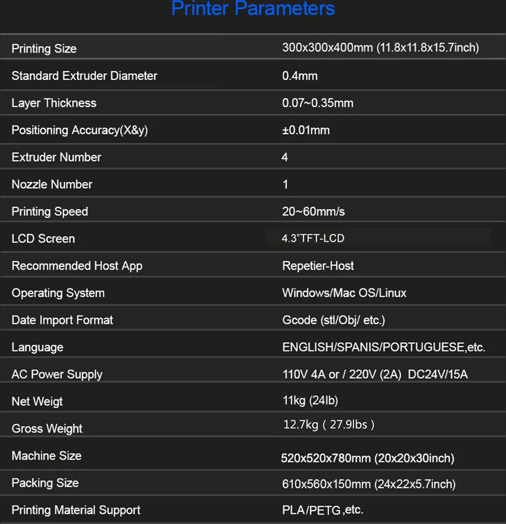 3D Drucker ZONESTAR Z8PM4 PRO FDM 300 X 300 X 400 Mm Baubereich 4-IN-1-OUT Ganzmetall-Extruder Mix-Farbdruck Mit 4,3-Zoll-TFT-LCD-Unterstützung Automatische Filamenterkennung Hohe Präzision Für PLA/PLA+/PETG 1,75-mm-Filament Kompatibel Mit Windows/Mac Betriebssystem/Linux-System