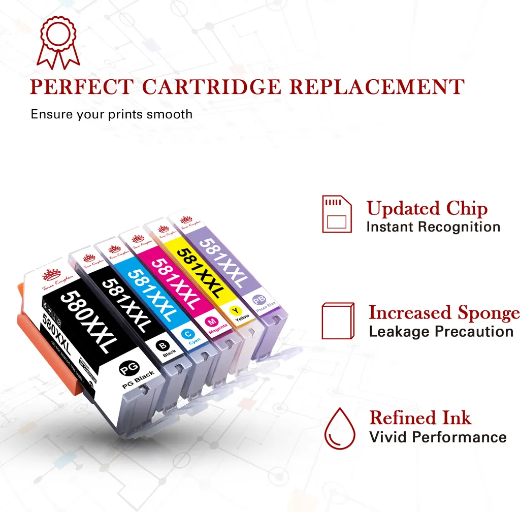 6er (PGBK/BK/C/M/Y/PBlau) PGI-580XXL CLI-581XXL Druckerpatronen Als Ersatz Für Canon 580 581 XXL Patronen Kompatible Für Canon Pixma TS8150 TS8151 TS8152 TS8250 TS8251 TS8252 TS9150 TS9155