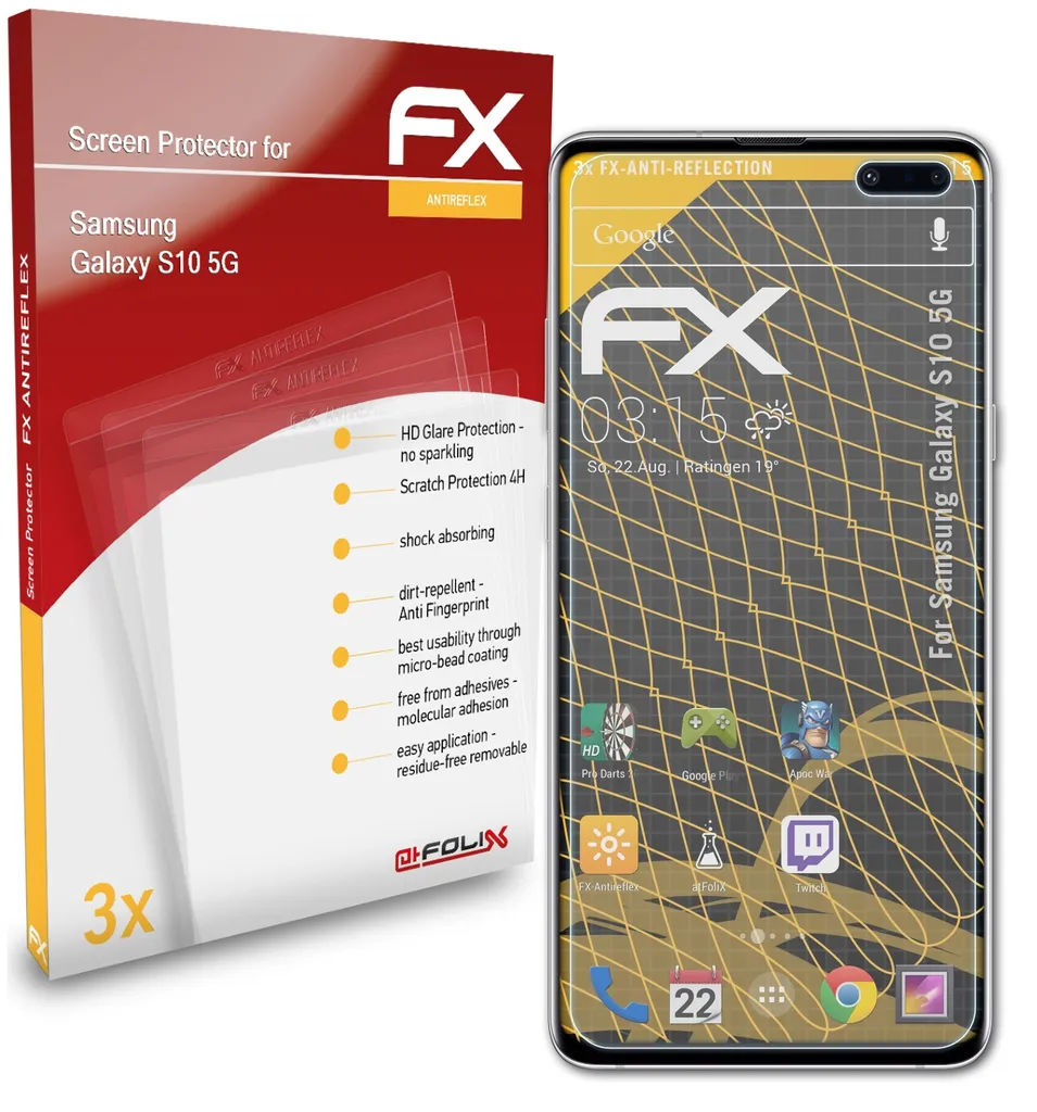 AtFoliX FX-Antireflex 3x Schutzfolie Kompatibel Mit Samsung Galaxy S10 5G Panzerfolie