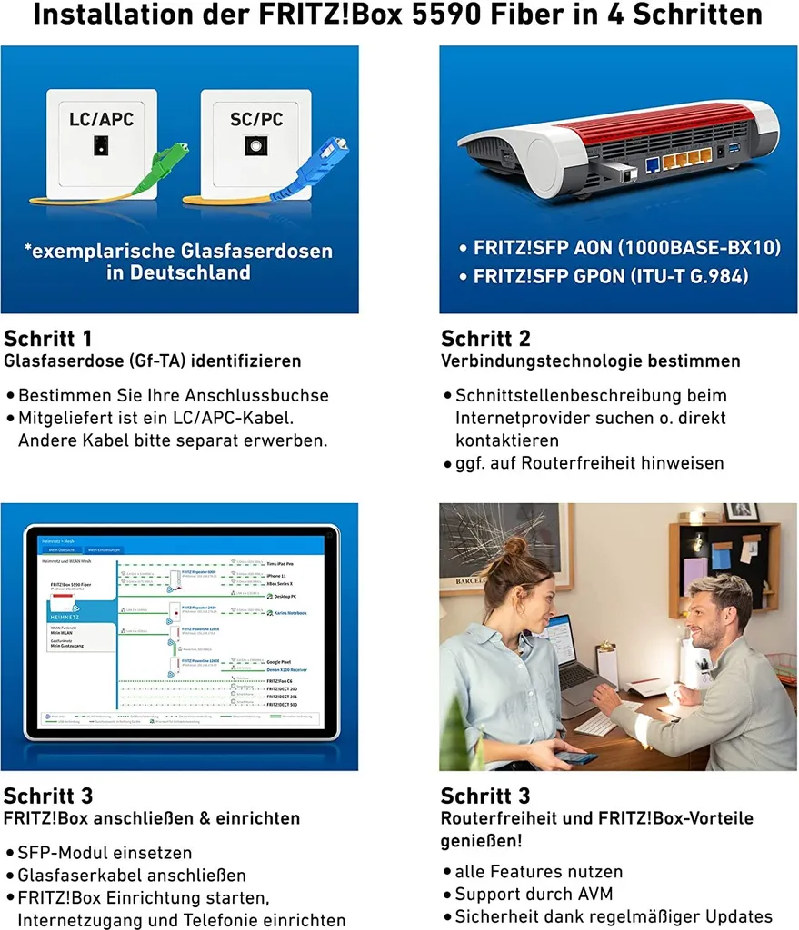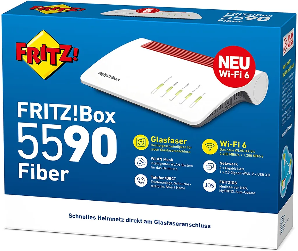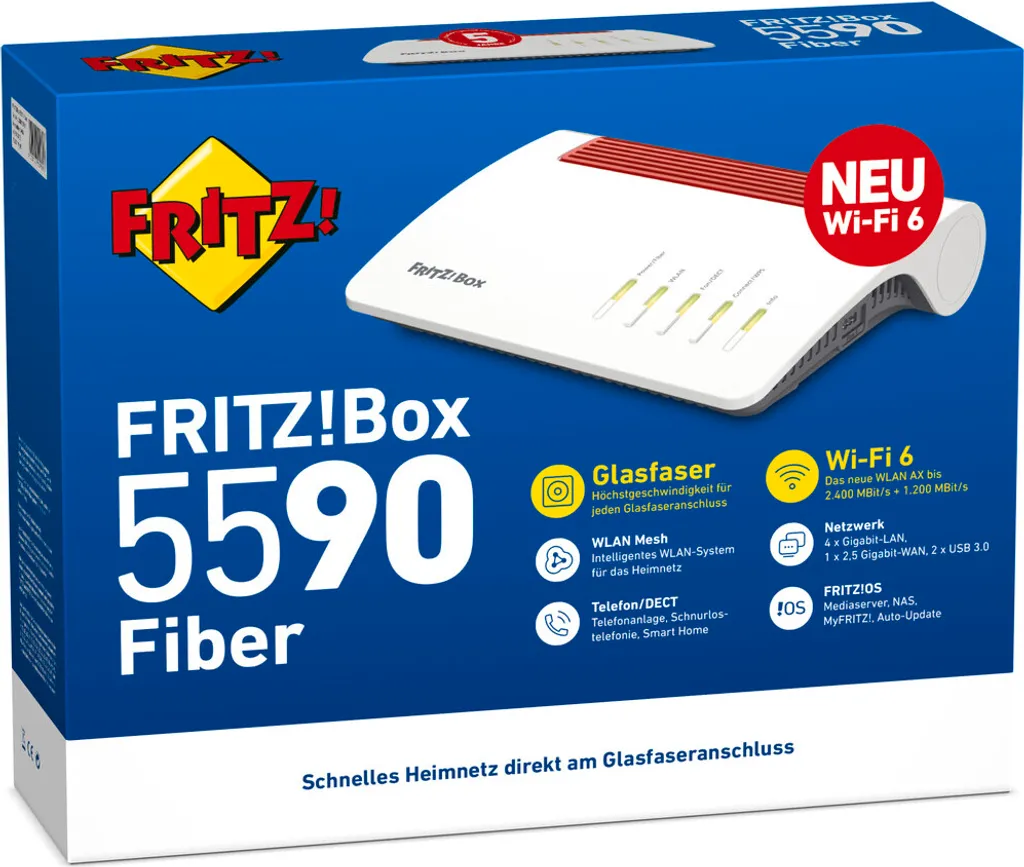 AVM FRITZ!Box 5590 Fiber (Wi-Fi 6 Glasfasermodem (WLAN AX), Bis 2.400 MBit/s (5 GHz) Und 1.200 MBit/s (2,4 GHz)