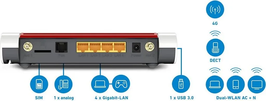 AVM FRITZ!Box 6850 LTE Router LTE-Modem WLAN AC DECT 4 Gigabit-LAN SIM-Slot