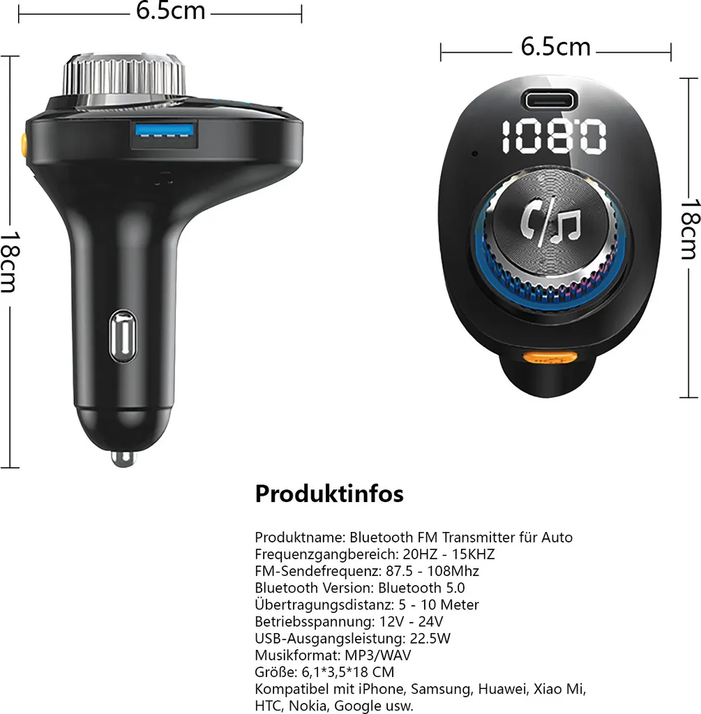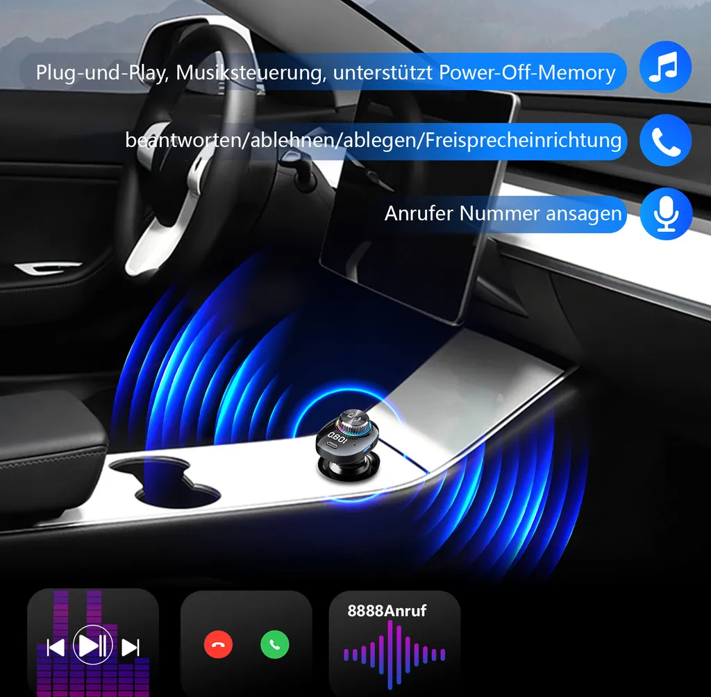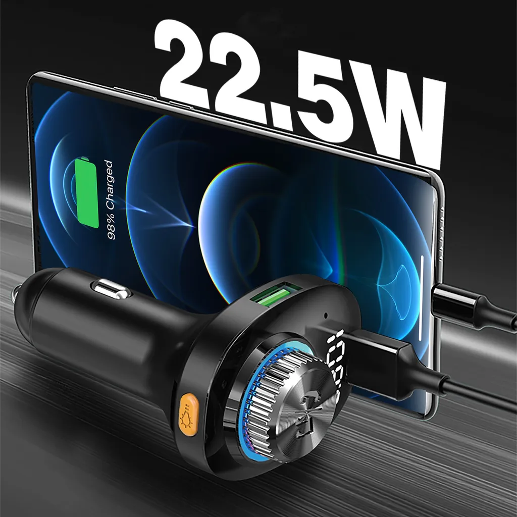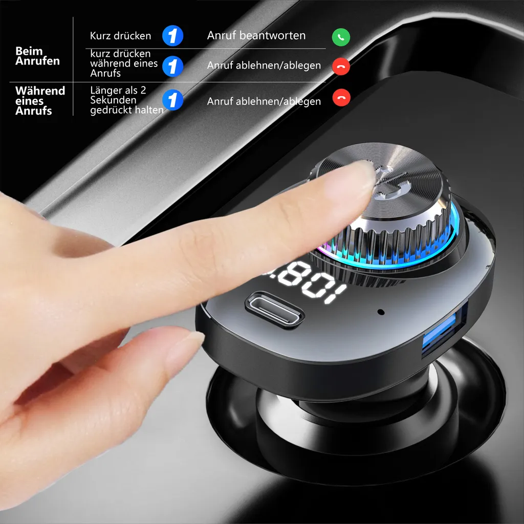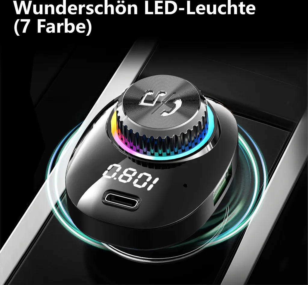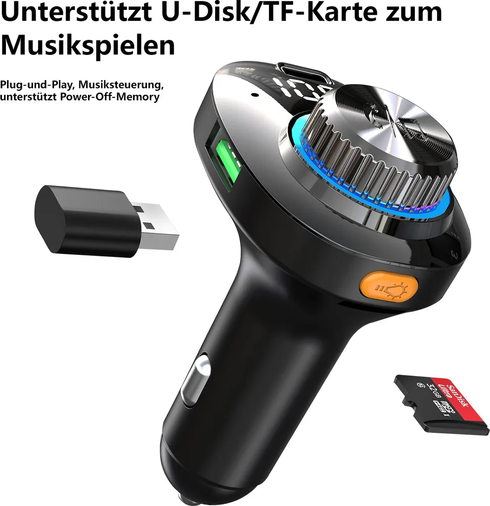 Bluetooth FM Transmitter Für Auto Mit Freisprecheinrichtung Und Navigation, Kabellos FM Bluetooth Adapter Auto Mit Bunte LED-Leuchte (7 Farbe), Kfz-Radio FM Transmitter Unterstützt TF-Karte USB-Drive Musiksteuerung, USB-A USB-C Dual USB-Ladegerät Mit PD 22.5W Schnellladung Für Smartgeräte, Handy Freisprechanlagen, GPS-Geräte