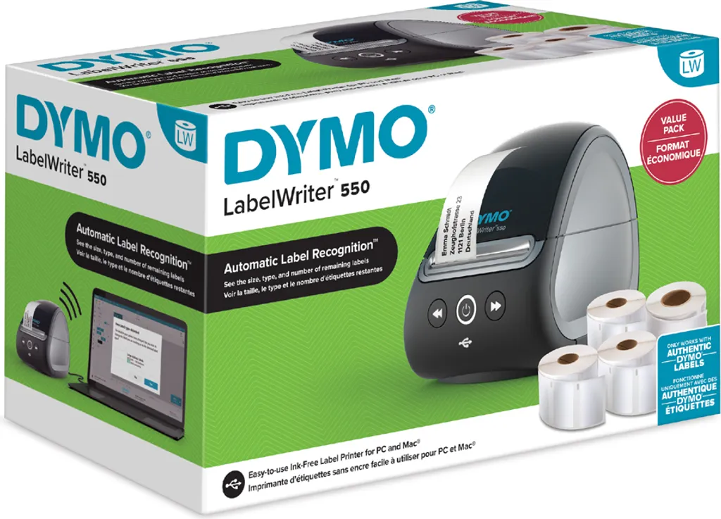DYMO Etikettendrucker | Labelwriter 550 Value Pack | Inkl. 4 Rollen