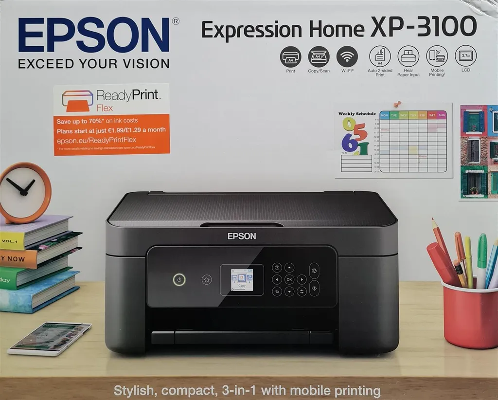 | Zusätzliche Varianten | Epson Drucker Expression Home XP-3100, Tintenstrahl, 100 Blätter, Farbe: Schwarz, Epson Multifunktionsgerät mit mobiler Druckfunktion XP-2105 3-in-1 Expression Home |