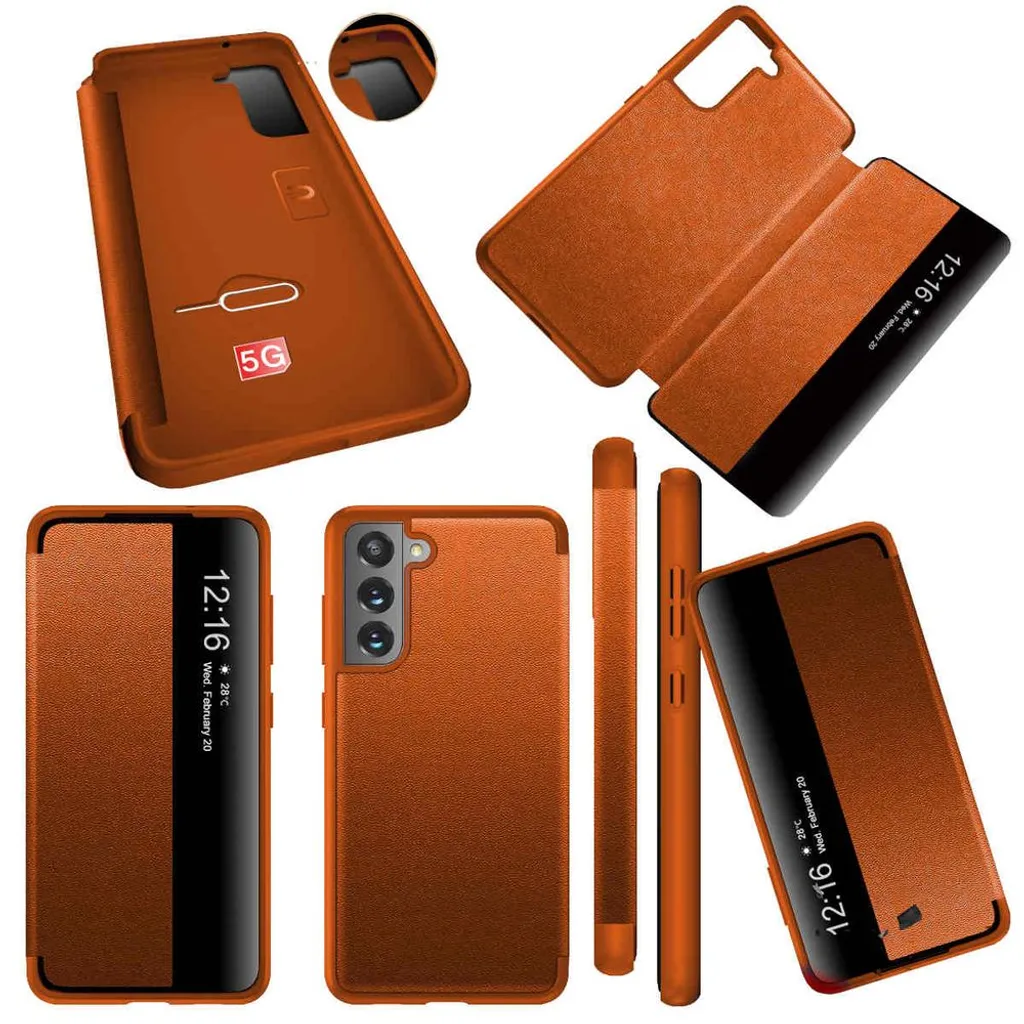 Für Samsung Galaxy S21 FE G990B Wake UP Handy Tasche Orange Etuis Magnetisches View Book Cover Schutz Case Hülle Zubehör Wallet