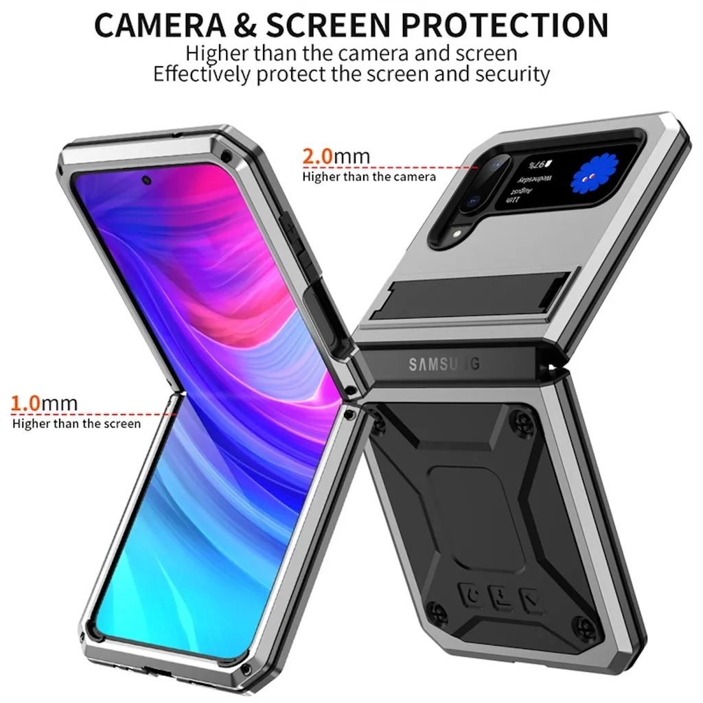 Für Samsung Galaxy Z Flip4 5G Stoßfeste Metall Design Handy Tasche Hülle Etuis Silber