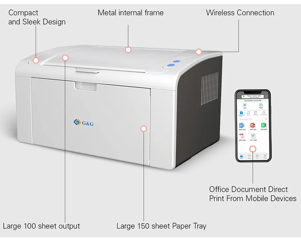 G&G P2022W S/w Laserdrucker 22 Seiten/ Min. WLAN, Mobile App