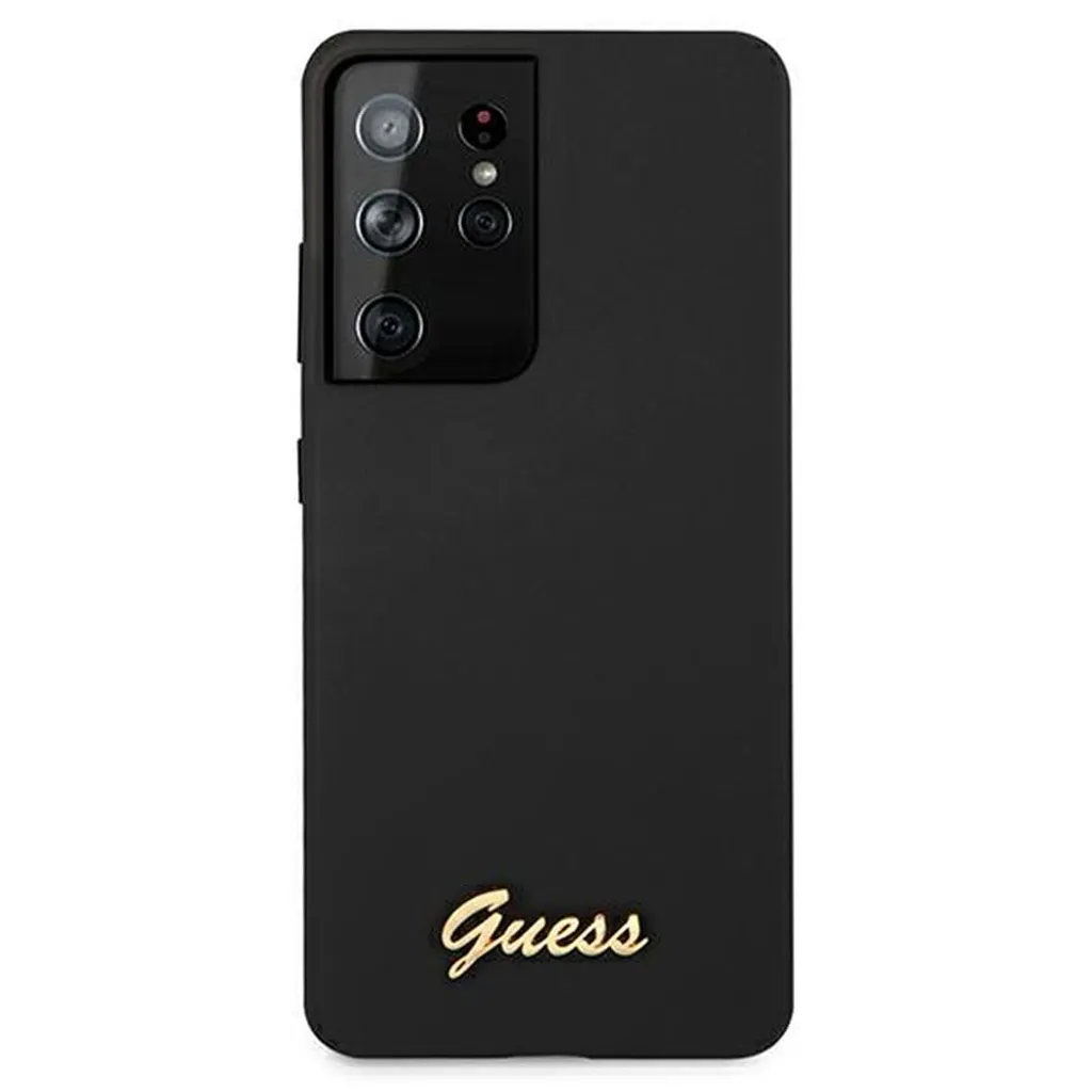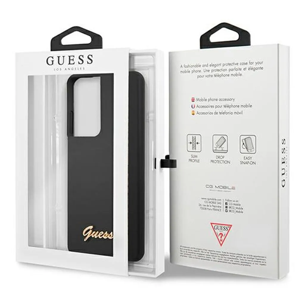 Guess Silikon Script Samsung Galaxy S21 Ultra G998B Schwarz Silicon Case Cover Schutzhülle Etui