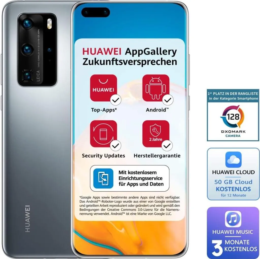 Huawei Smartphone P40 Pro 16,7cm (6,58 Zoll), 8GB RAM, 256GB Speicher, 50MP Kamera, Farbe: Silber