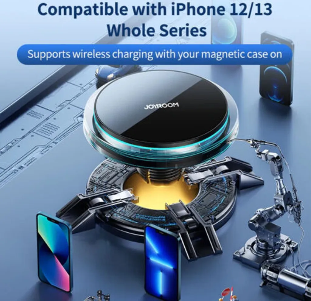 Joyroom Qi Kabelloses Induktionsladegerät 15 W (MagSafe-kompatibel Für IPhone) Lüftungsöffnung Silber (JR-ZS291)