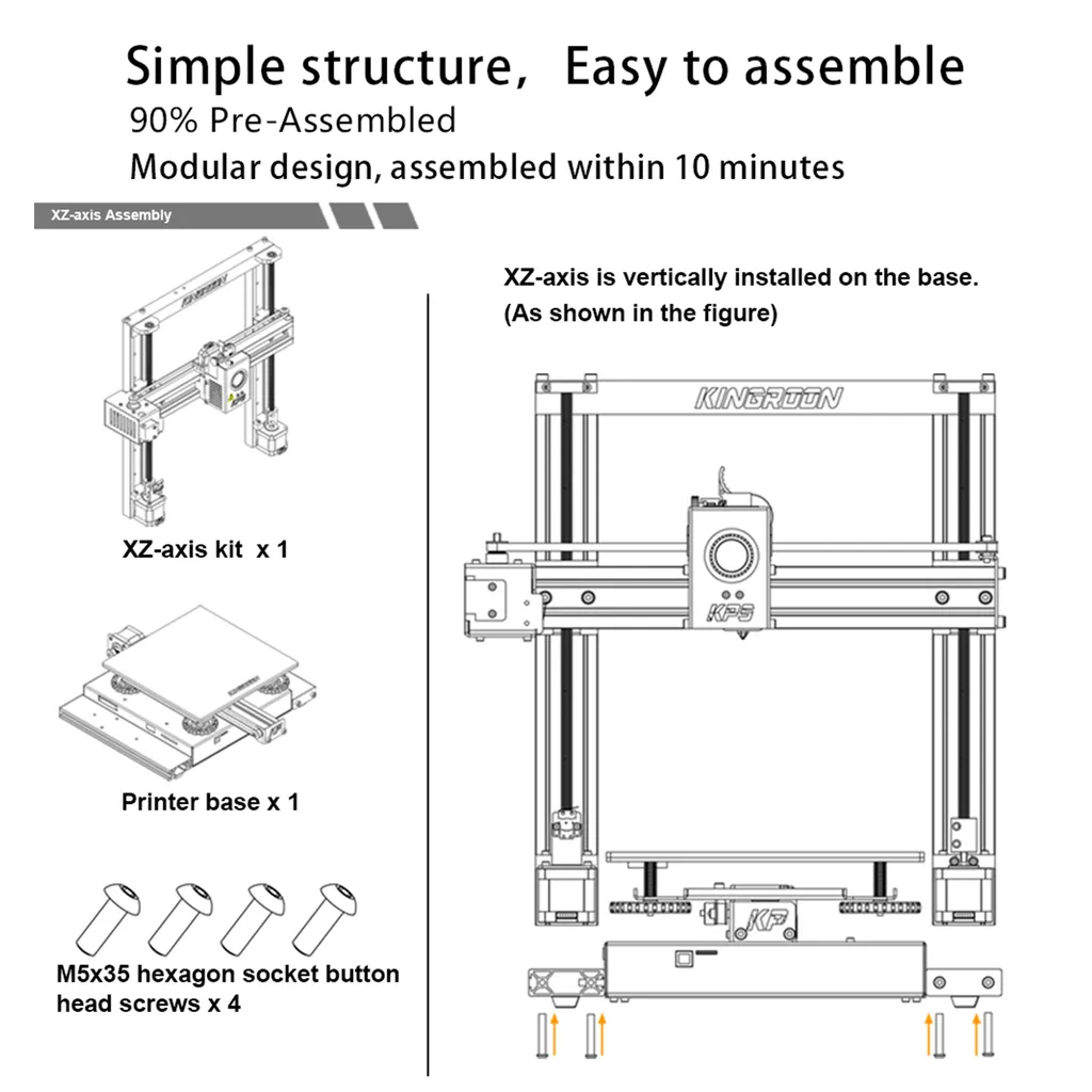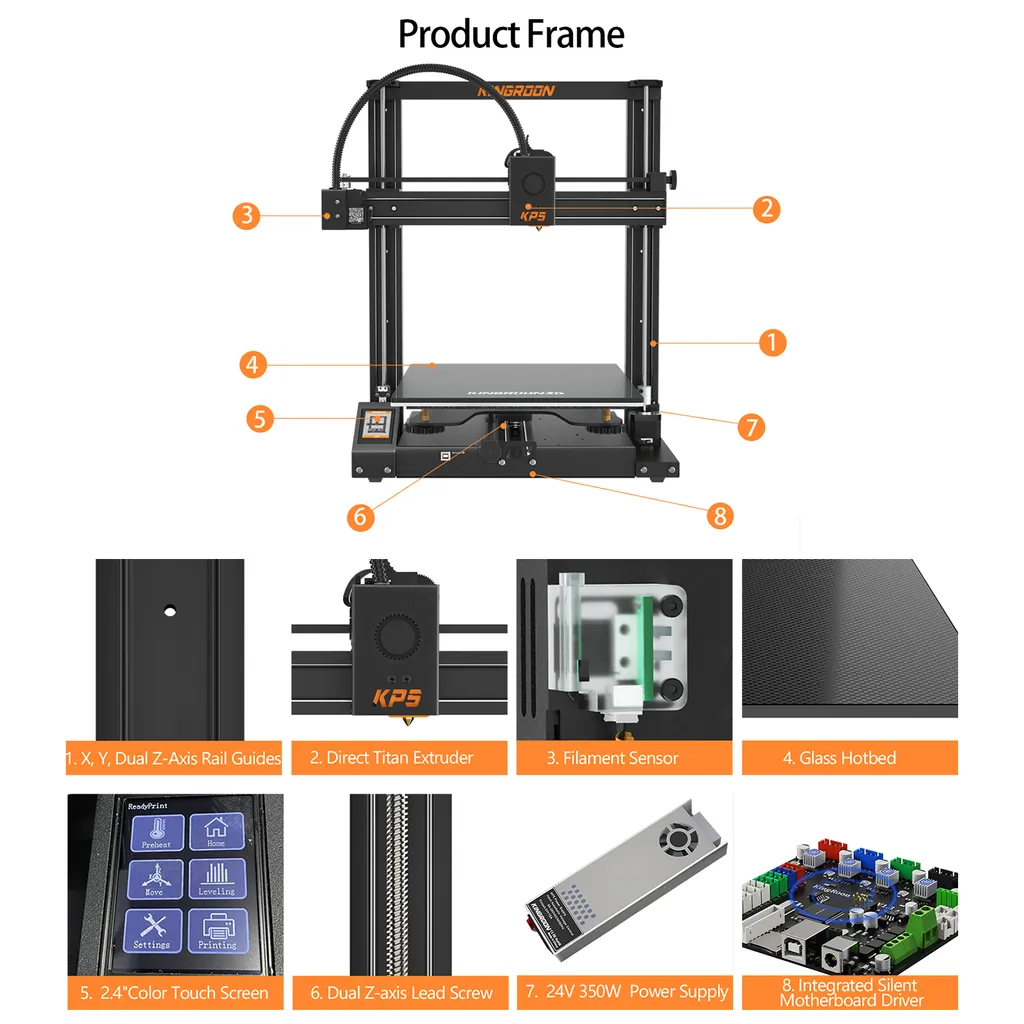 KINGROON KP5L 3D-Drucker FDM 300 X 300 X 330 Mm Druckgröße Titan-Extruder Doppel-Z-Aixs-Gewindespindel Mit Glasplattform Für 1,75 Mm Filament PLA/TPU/Holz