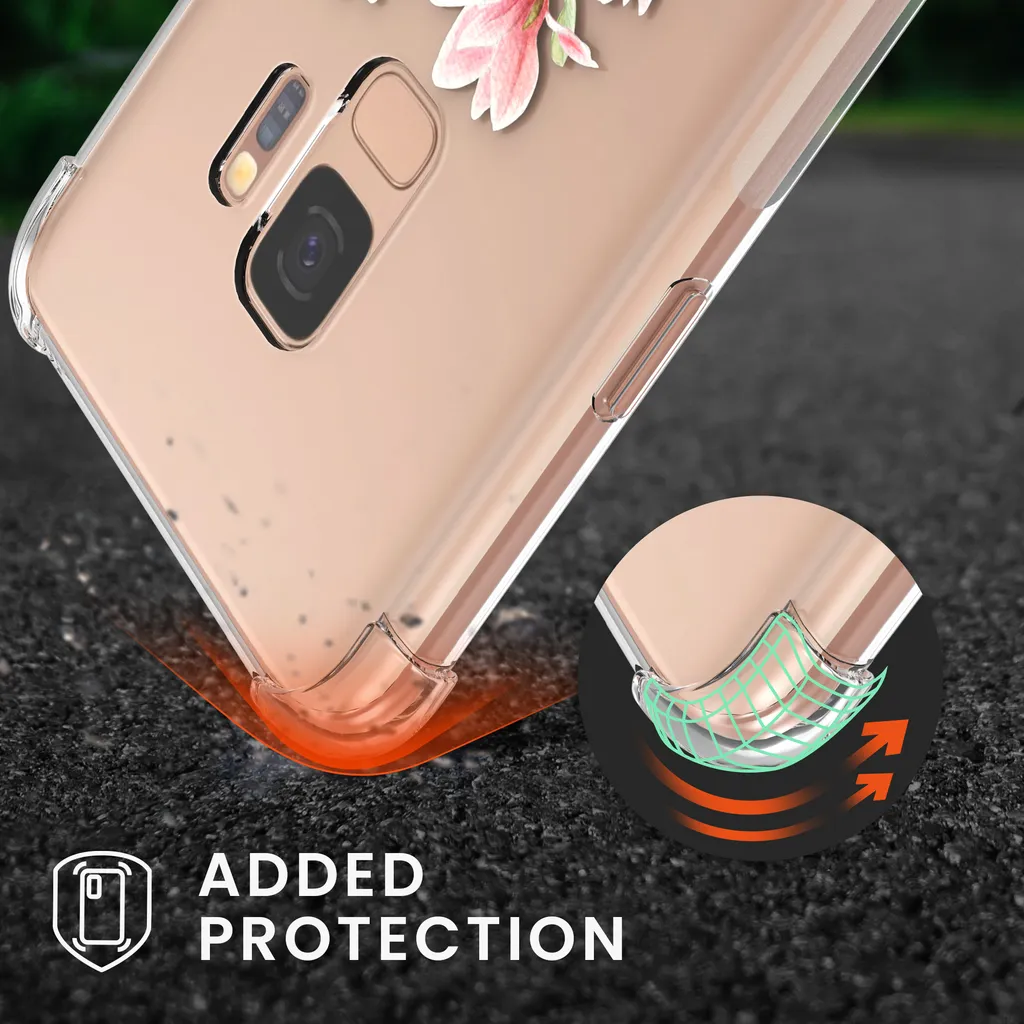 Kwmobile Hülle Kompatibel Mit Samsung Galaxy S9 – Silikon Handyhülle Mit Kette – Rosa Weiß Transparent Magnolien