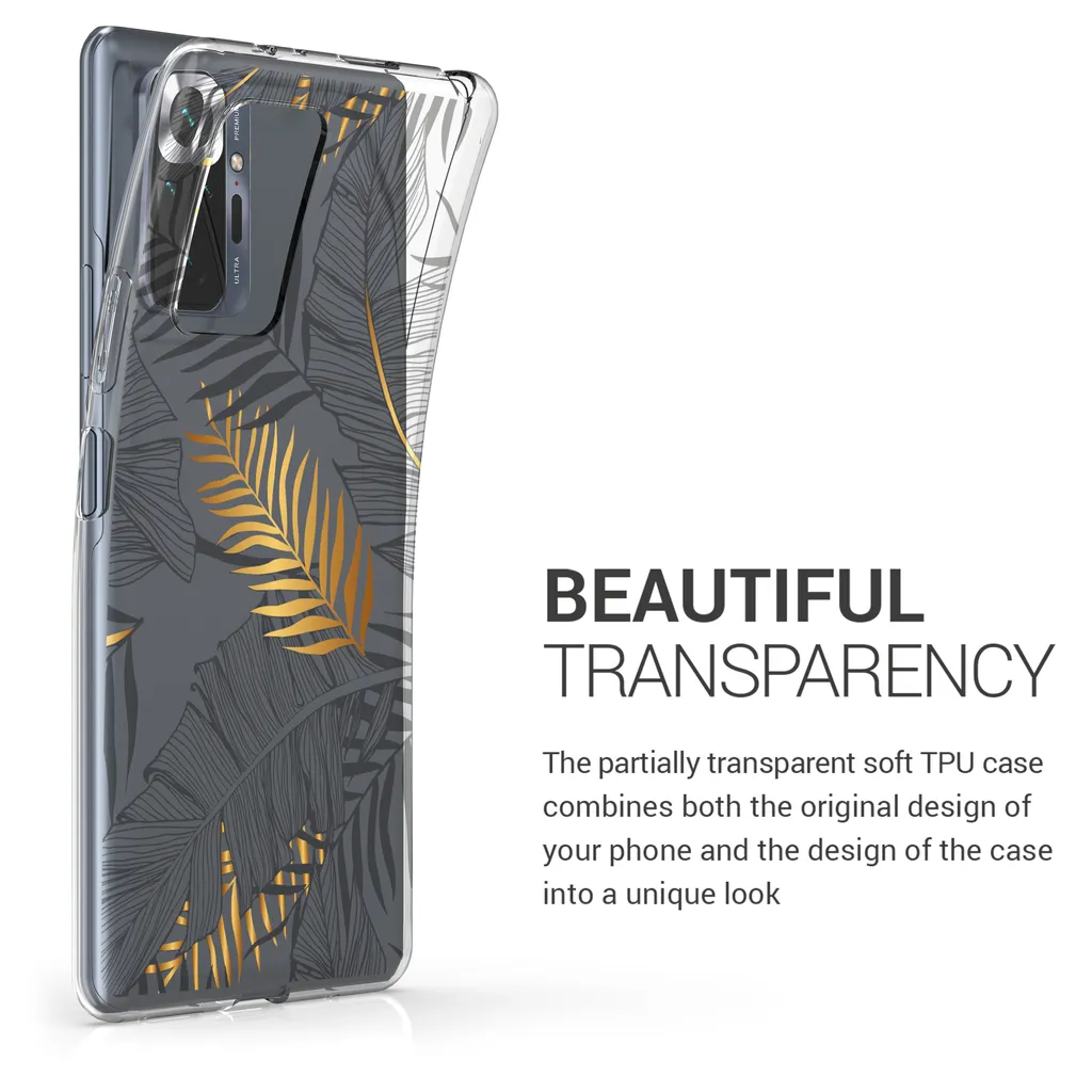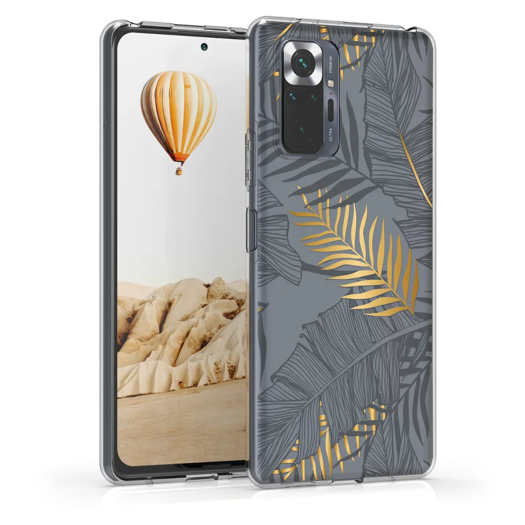 Kwmobile Hülle Kompatibel Mit Xiaomi Redmi Note 10 Pro – Handyhülle Silikon Case – Dschungel Gold Grau Transparent