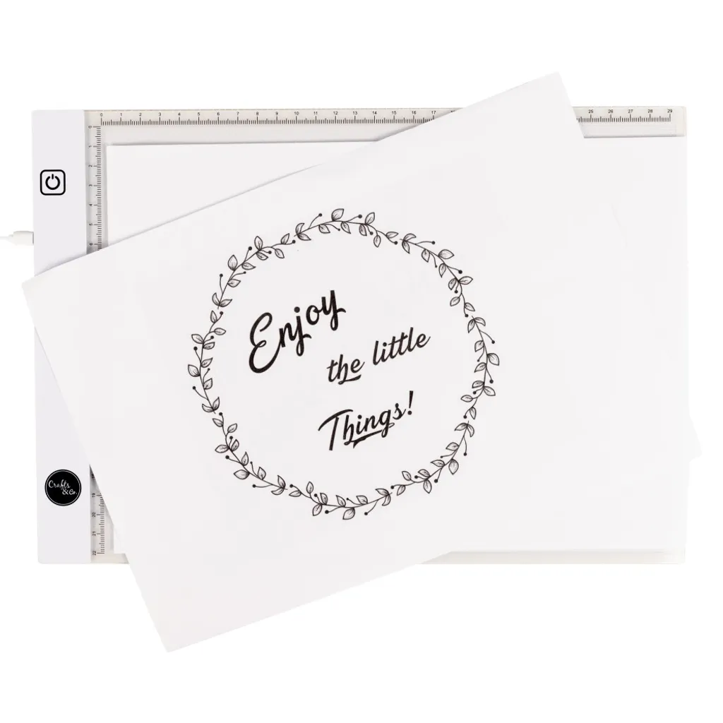Leuchtpad | Crafts&Co Leuchttisch A4 | Weiß | Dimmbarer Leuchtplatte | Lightpad Für Zeichnen, Malen, Diamond Painting, Hobby, Handwerk | LED Leuchttisch Mit USB Kabel | Lichtpad