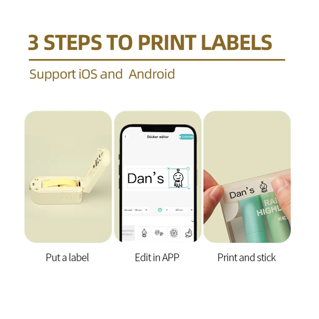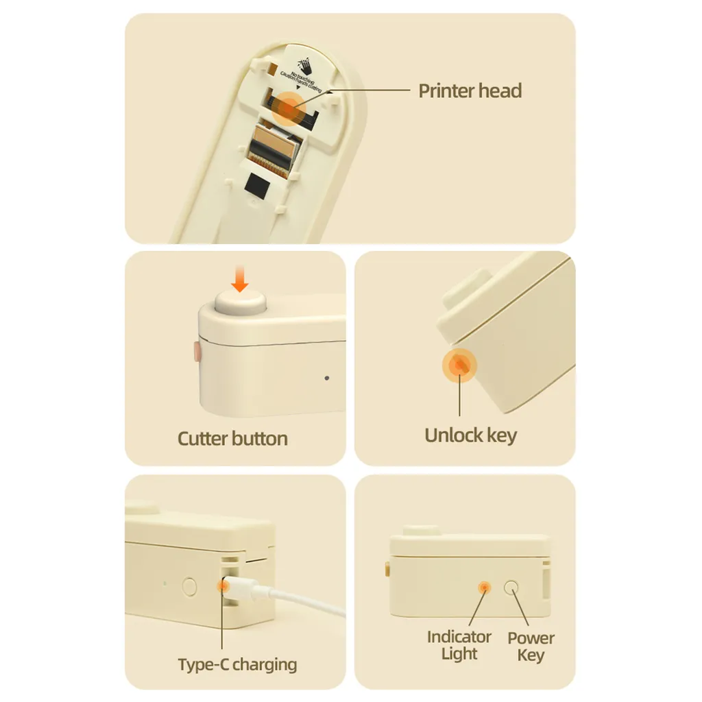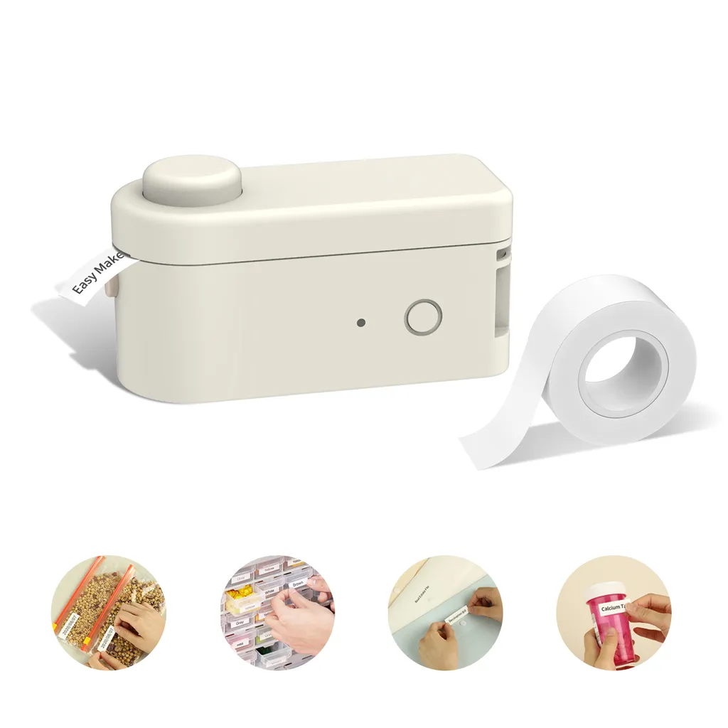 MAKEID Tragbarer Mini-Taschendrucker Thermo-Etikettendruckmaschine Drahtlose BT-Verbindung Mit 1 Rolle Etikettenpapierband Tintenfreier Druck DIY-Aufkleber Kompatibel Mit IOS Android Fuer Home Office Schulreisen