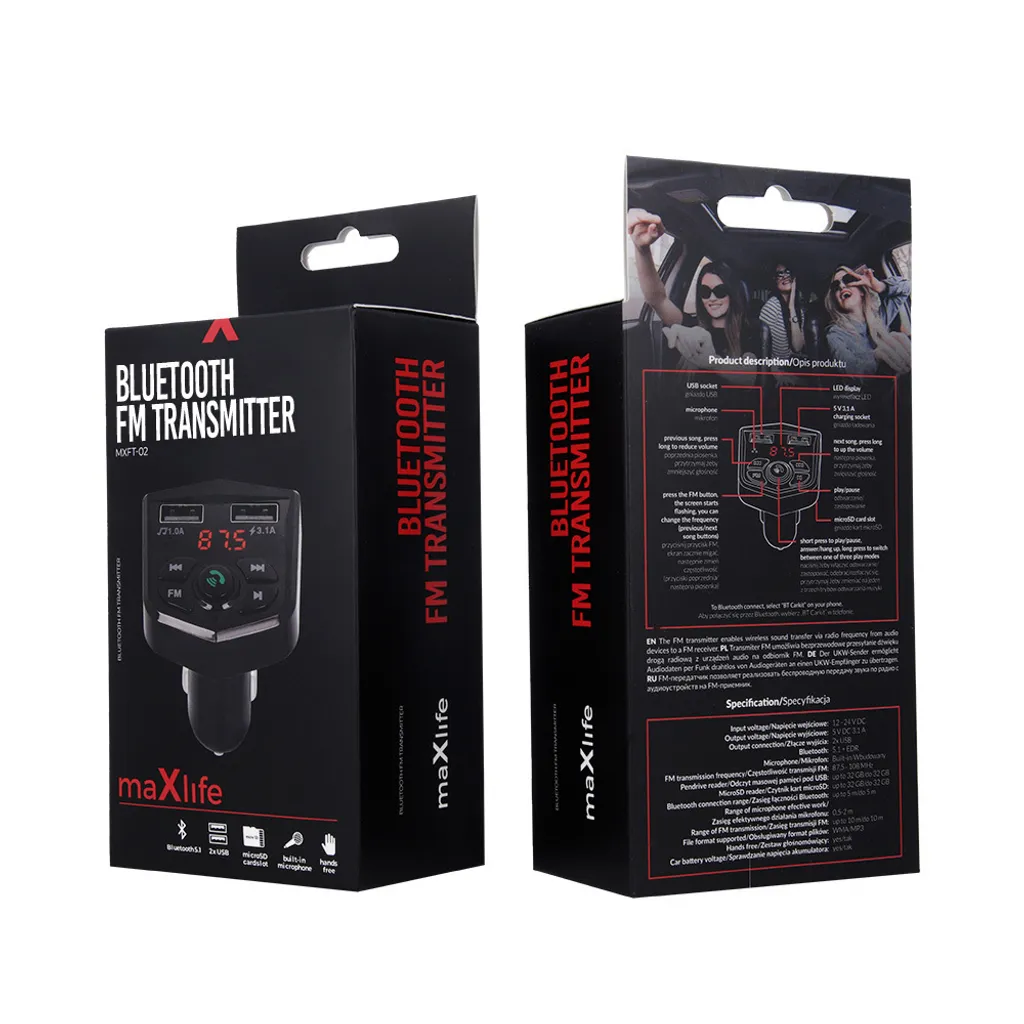 Maxlife FM Transmitter Auto Bluetooth KFZ Adapter Aux USB MicroSD-Slot. FM-Radio-Adapter Mit Freisprecheinrichtung Für Alle Handys/Smartphones Wie Samsung Galaxy S10, S9, IPhone XS, IPhone X