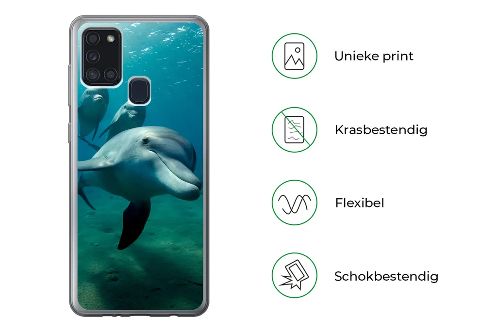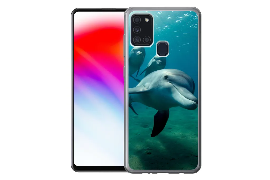 MuchoWow® Handyhülle Schutzhülle Hülle Für Samsung Galaxy A21s Wasser – Delphin – Blau Silikon Softcase Handy Hülle – Hartschale