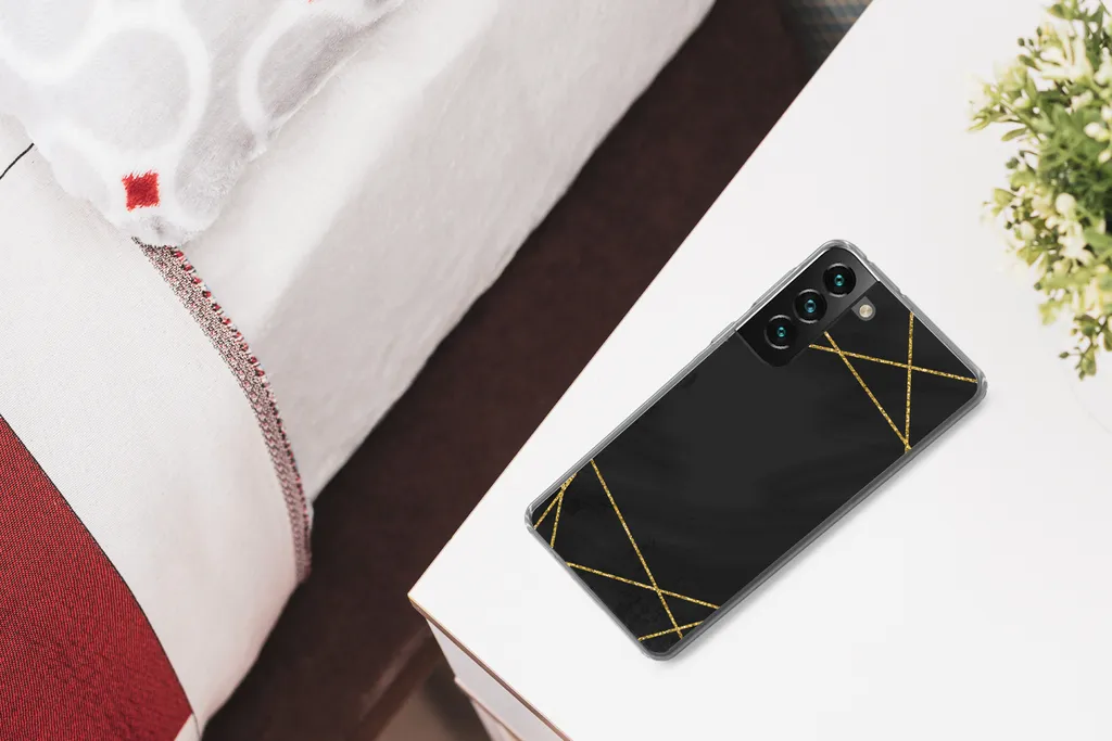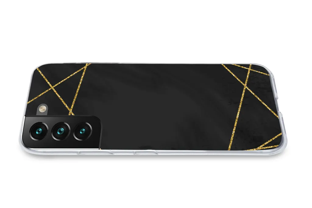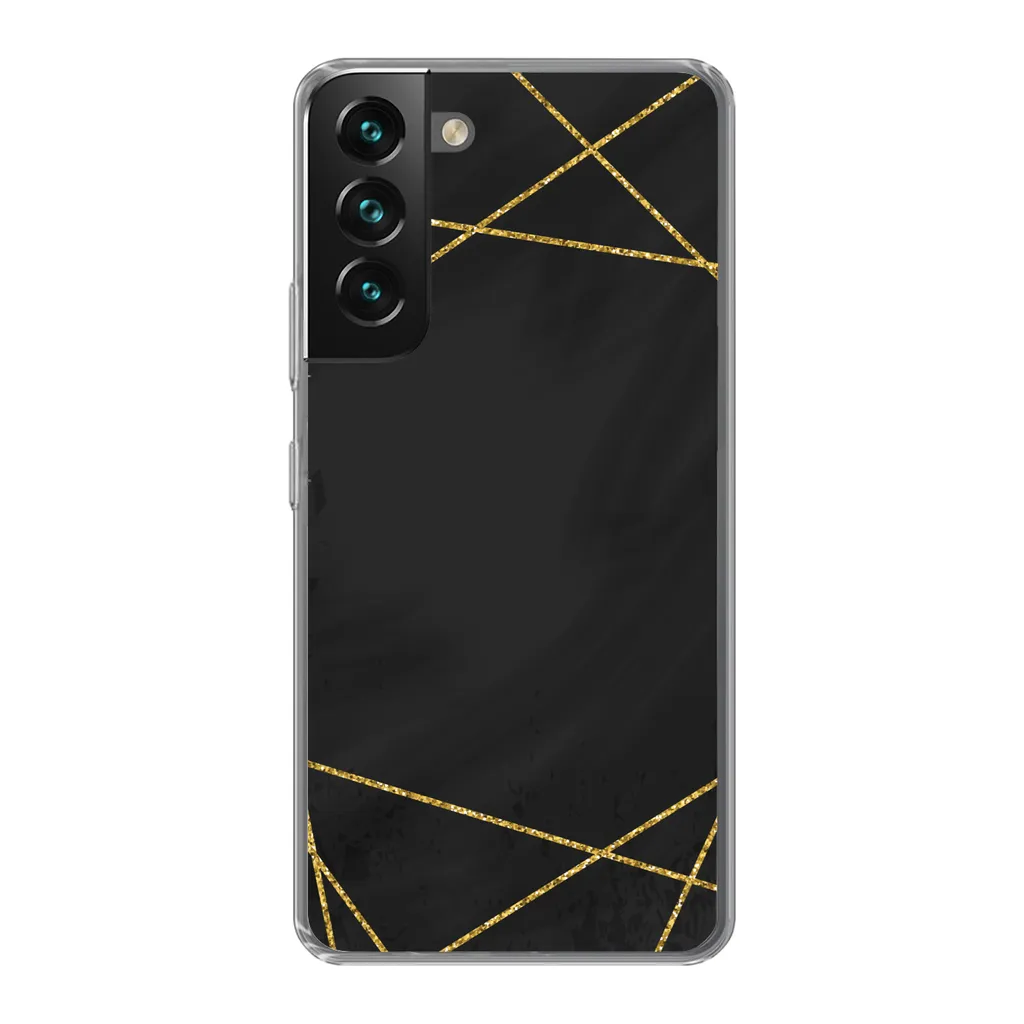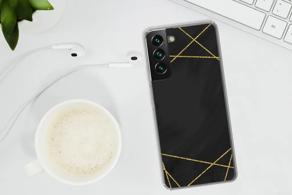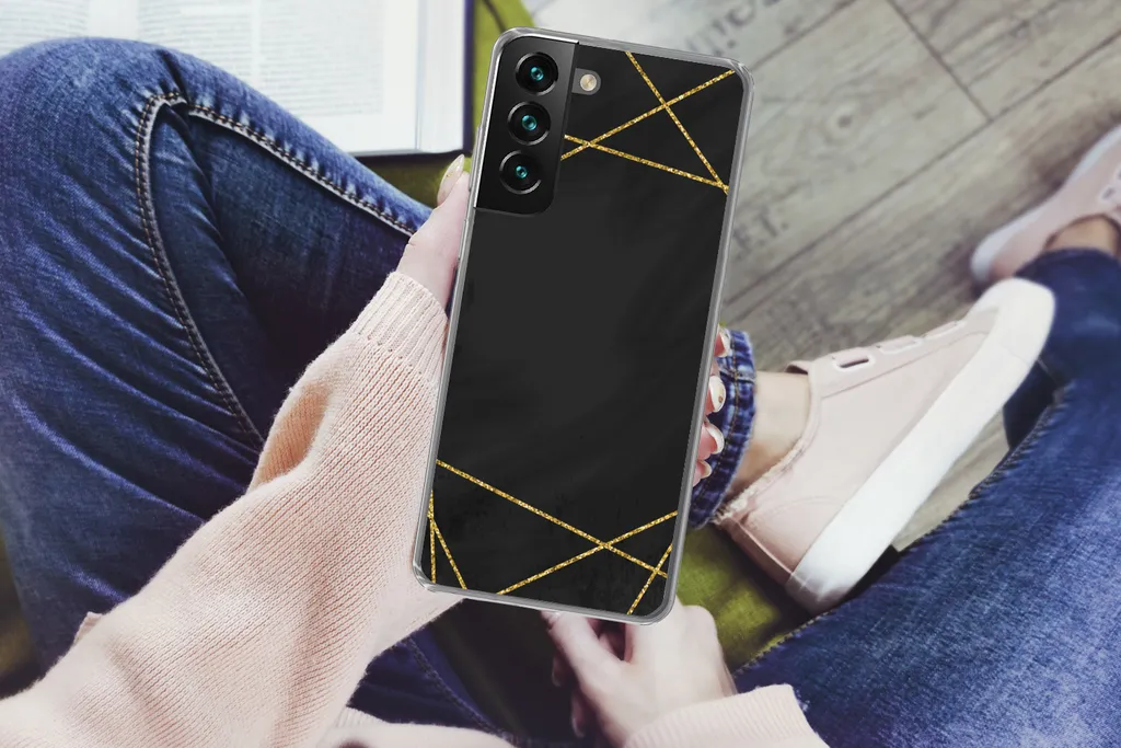 MuchoWow® Handyhülle Schutzhülle Hülle Für Samsung Galaxy S22 Plus Geometrisches Muster Aus Goldenen Linien Auf Schwarzem Hintergrund Silikon Softcase Handy Hülle – Schutzabdeckung