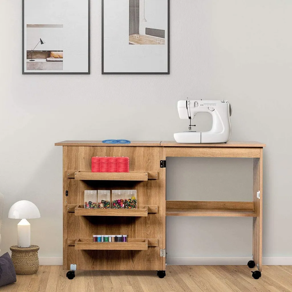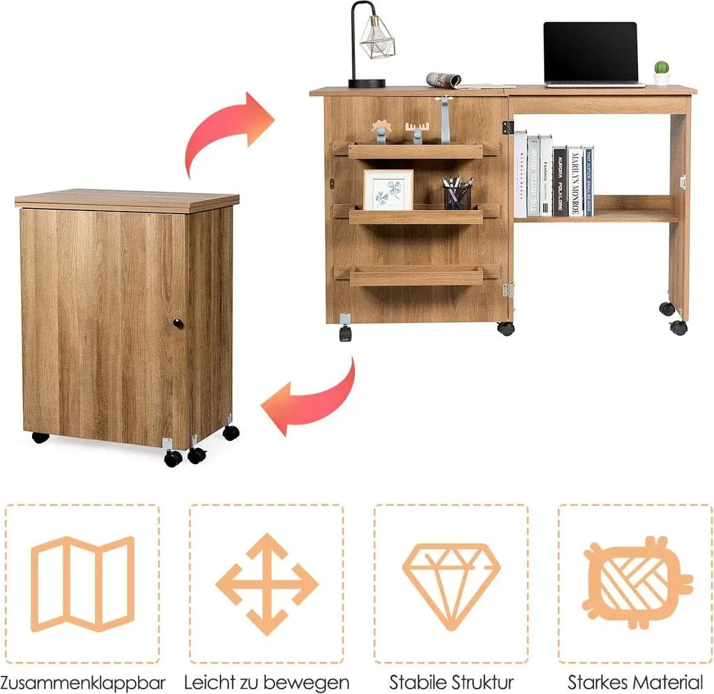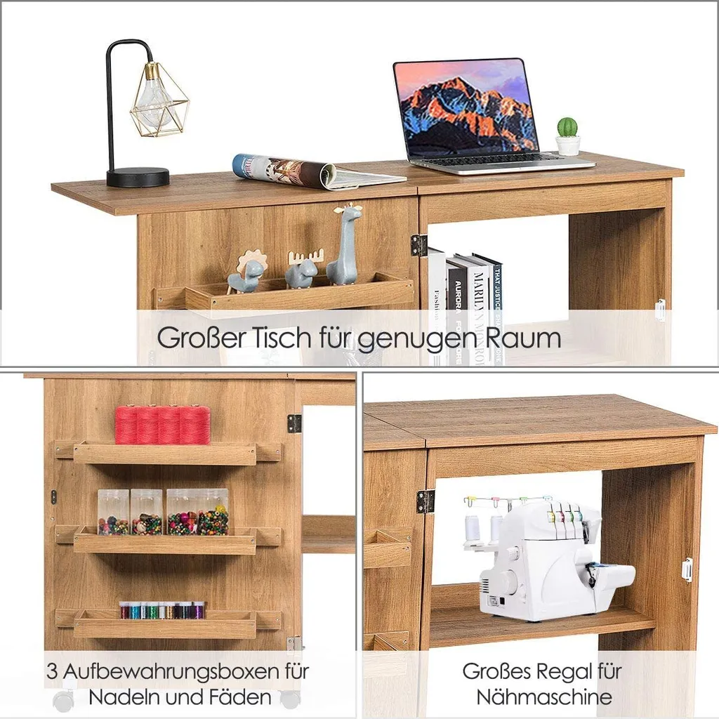 Nähtisch Nähmaschinenschrank Faltbar, Nähschrank Nähmöbel, Mehrzwecktisch Mit 4 Rollen (Natur)