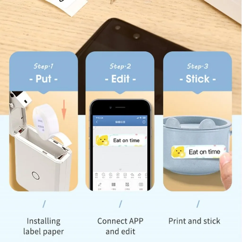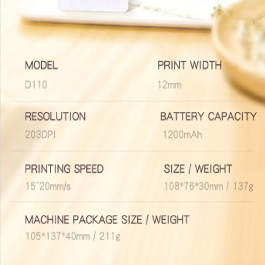 Niimbot D110 Etikettendrucker, Tragbar Bluetooth Kabellos Thermal Etikettendrucker Mit 1 Rollen Thermopapier, Für Android IPhone