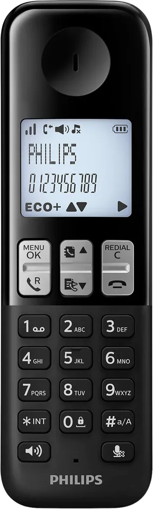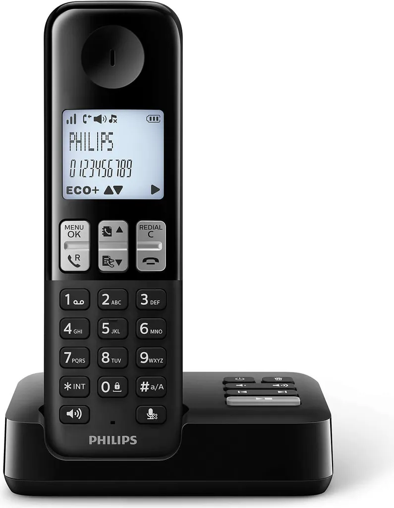 Philips D2551B / 01- Schnurloses DECT-Telefon Mit 1 Mobilteil Mit Anrufbeantworter, 50 Namen / Nummern Und Anrufer-ID – Schwarz