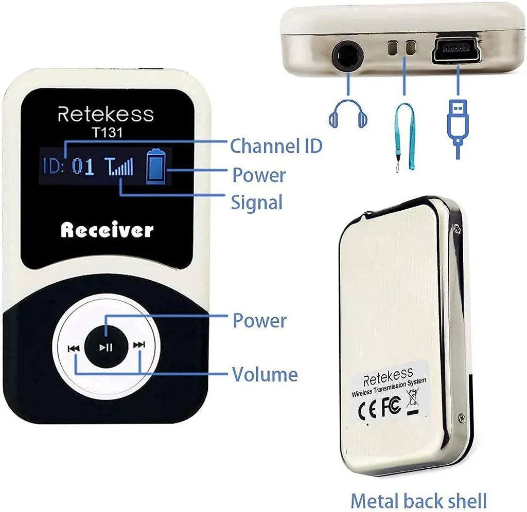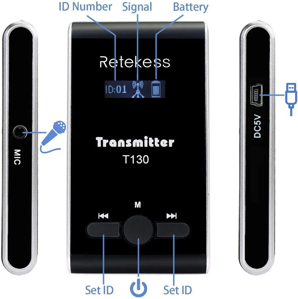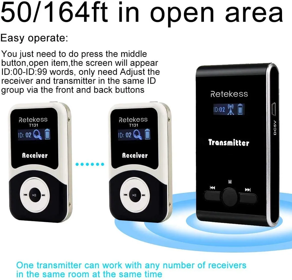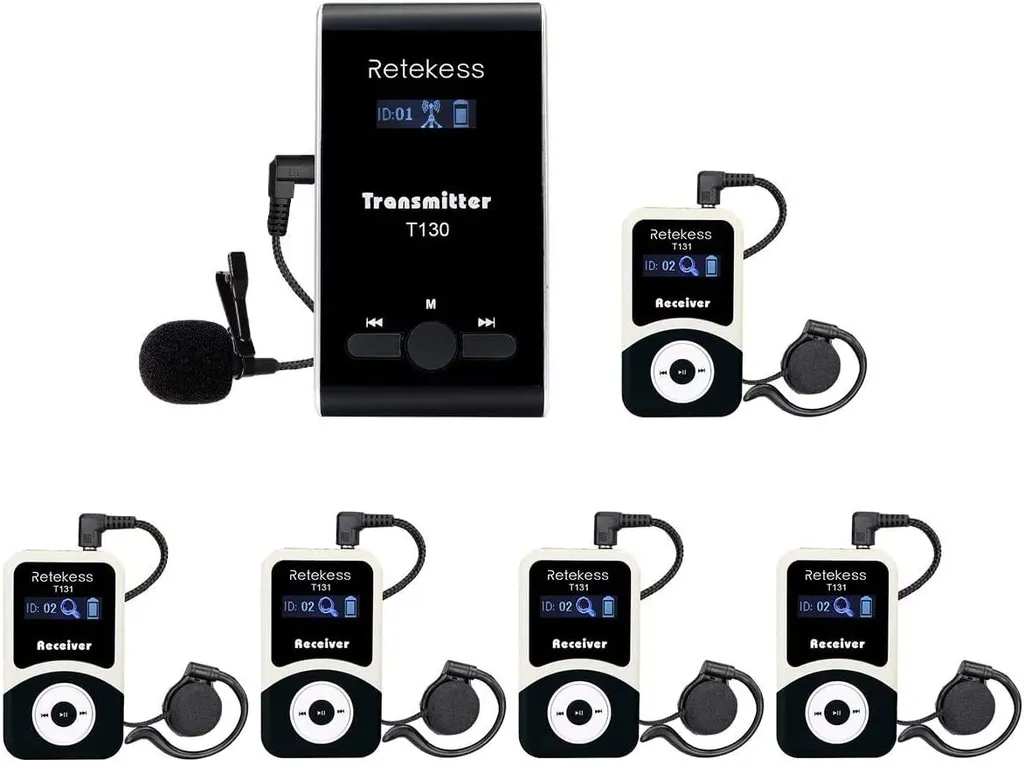 Retekess T130 T131 Wireless Tourguide System 99 Kanal, 60M, 1 Guide Sender Und 5 Zuhörer Empfänger Für Schulbesuche, Museumsbesuche, Wanderungen, Führungen
