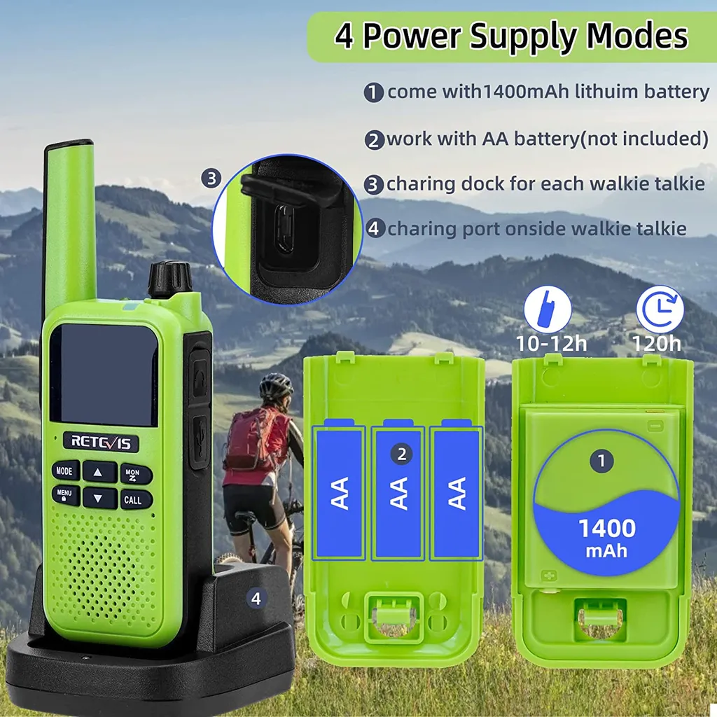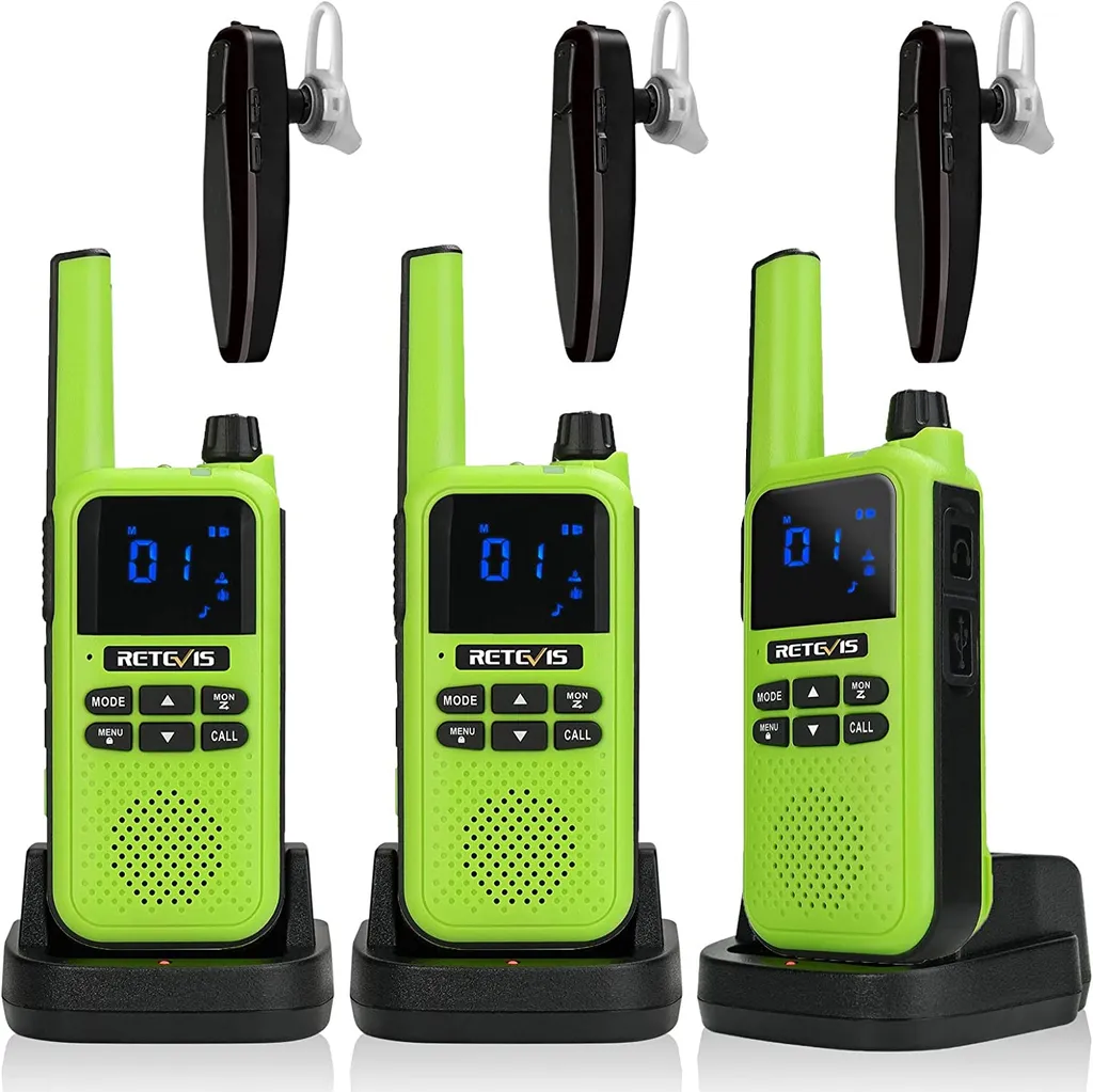 Retevis RA619 Walkie Talkie, Langstrecken Walkie Talkie Mit Bluetooth Headset, SOS Alarm, VOX, Taschenlampe, PMR446 2 Wege Radio Für Radfahren Im Freien (Grün, 3 Stück) Funkgeräte Set