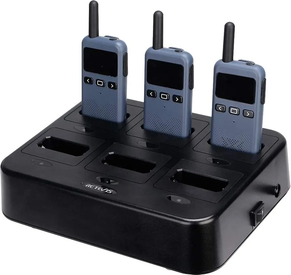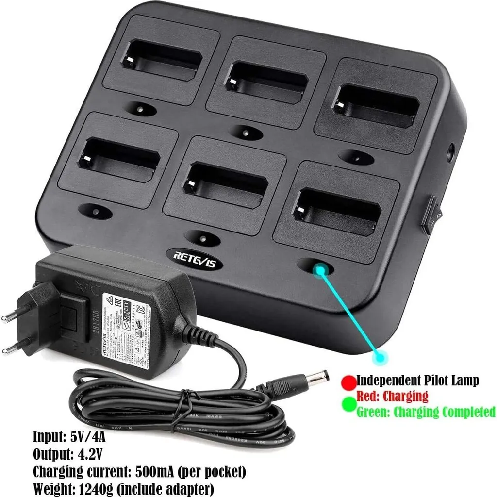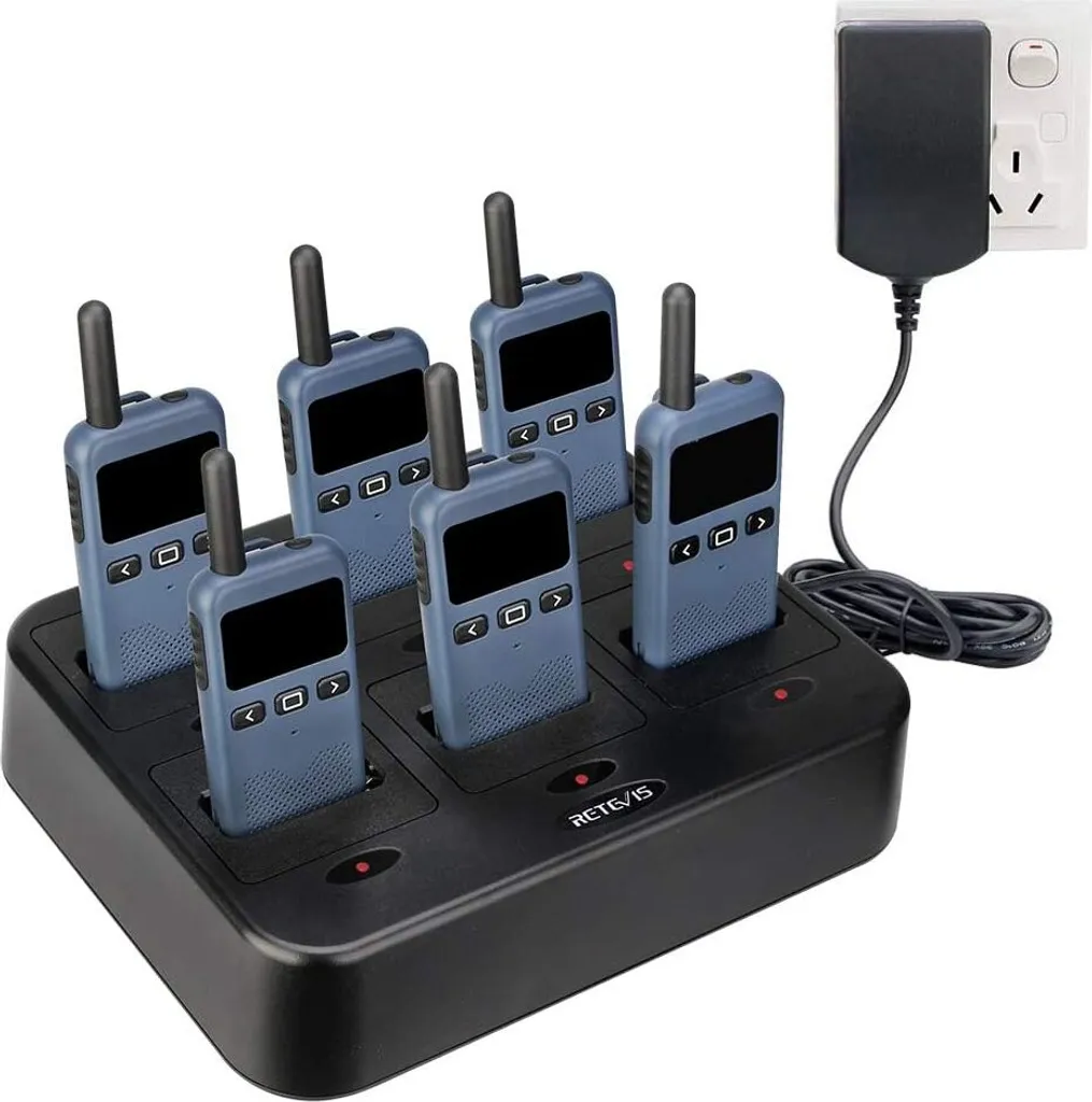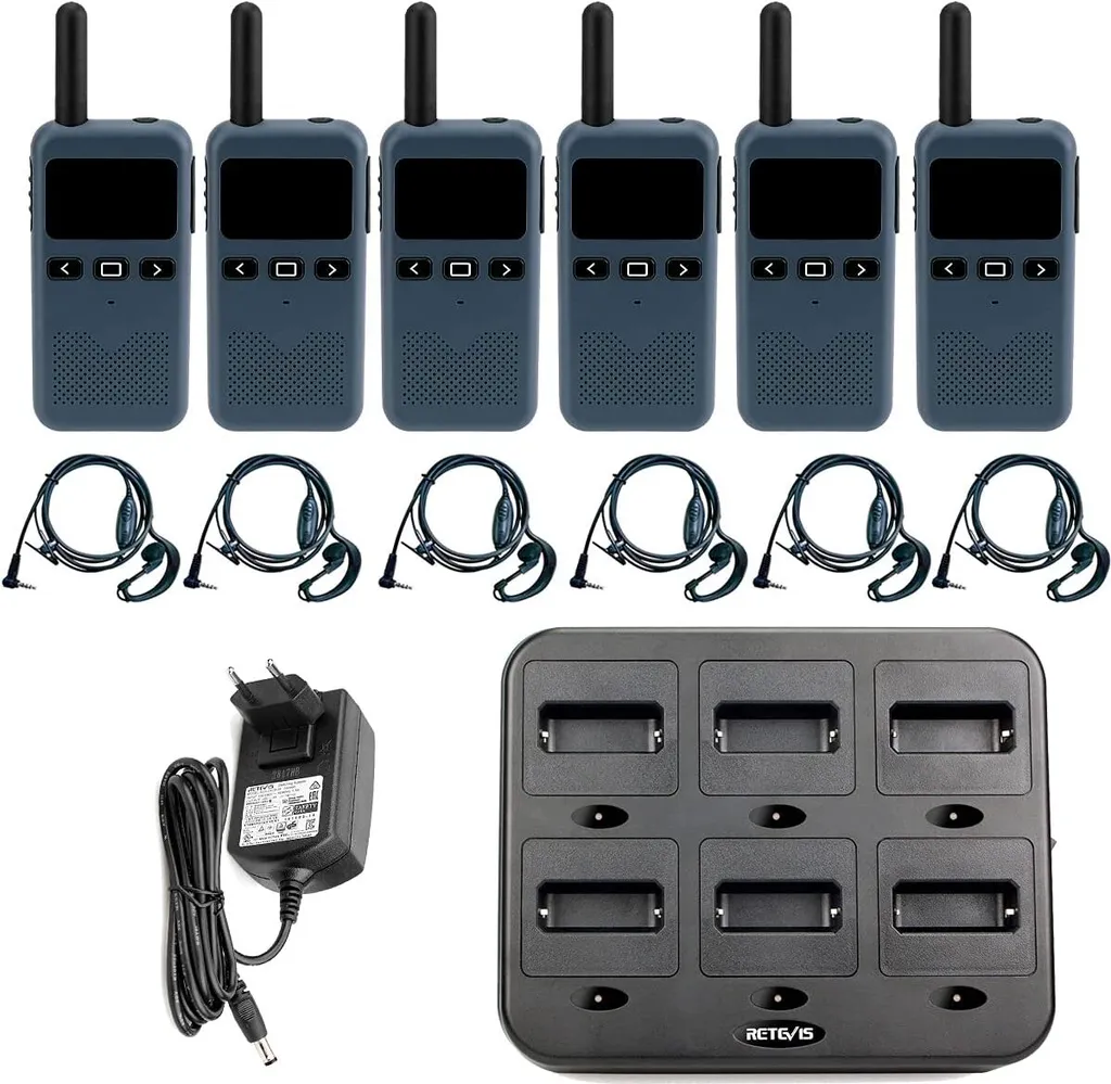 Retevis RB619 Funkgeräte Mit Headset, Walkie Talkie Mit 6-Wege-Ladegerät, Ferngespräch, 1650mAh, VOX, PMR446 Lizenzfrei Für Schule, Hotels, Museum (6 Stück, Marineblau)