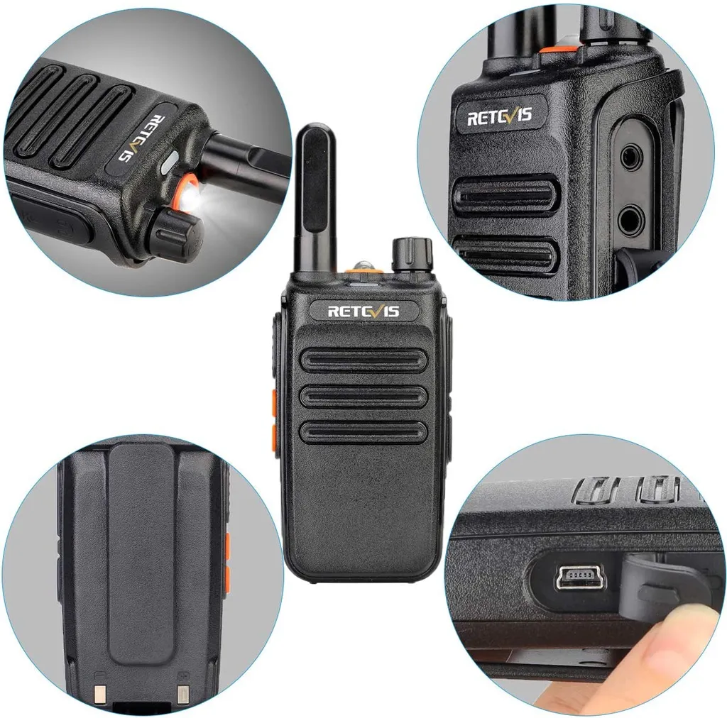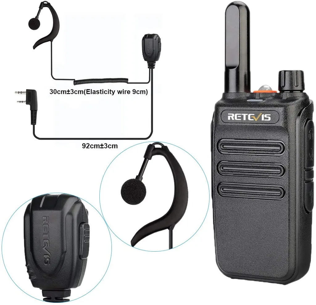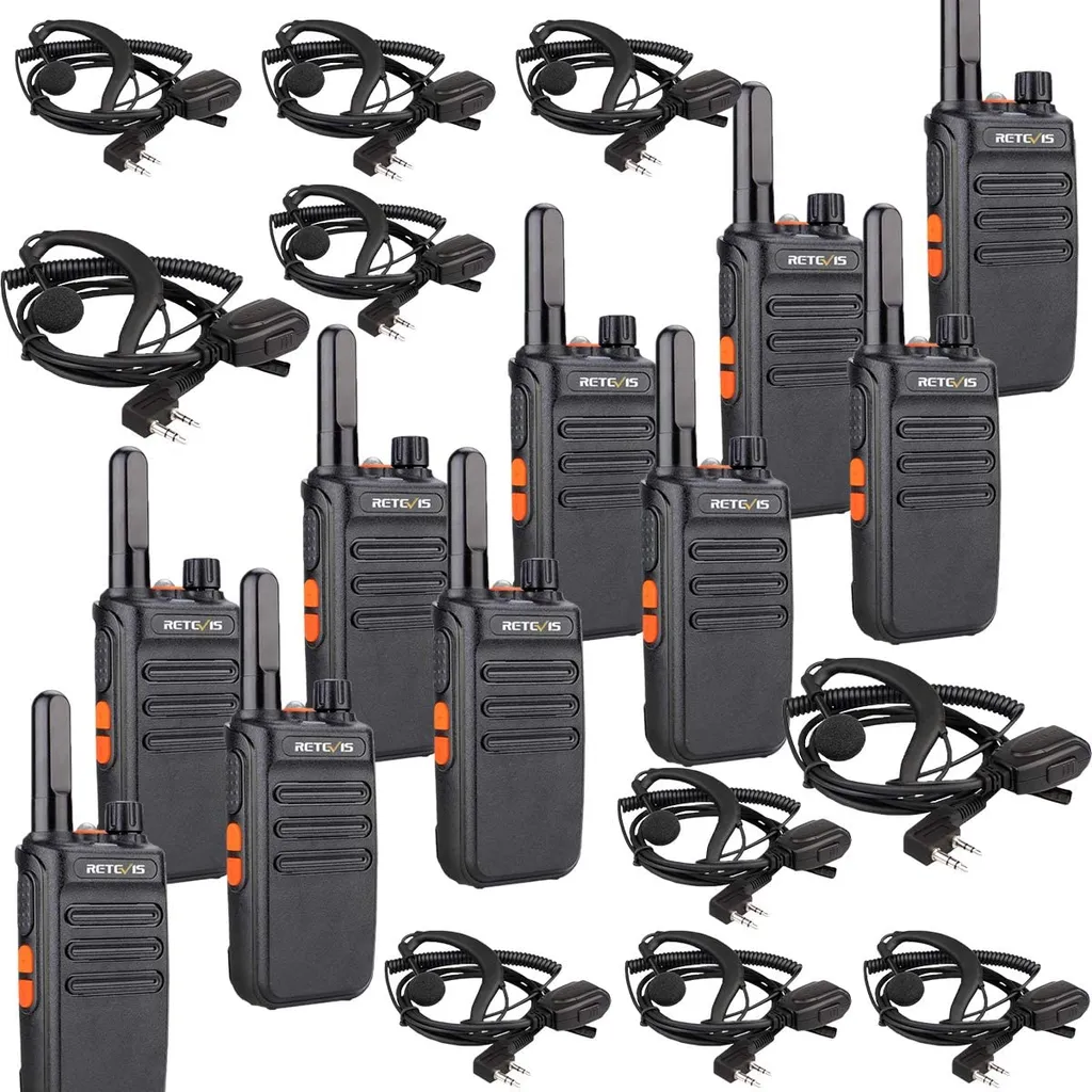Retevis RB635 Funkgeräte Set Mit Kopfhörer, Walkie Talkie VOX, PMR-Radio, Funkgerät, Handheld-Transceiver Mit Taschenlampe Für Schule, Supermarkt (Schwarz, 10 Stück)