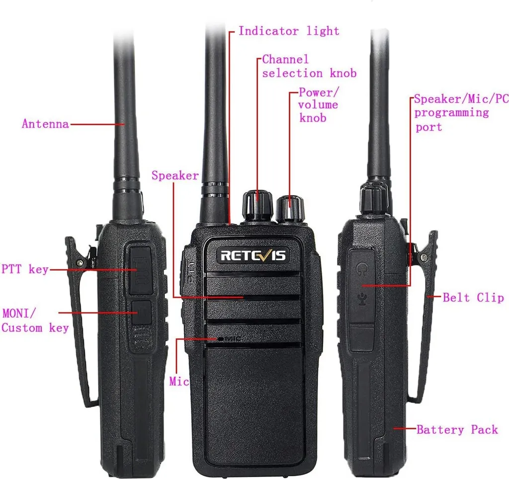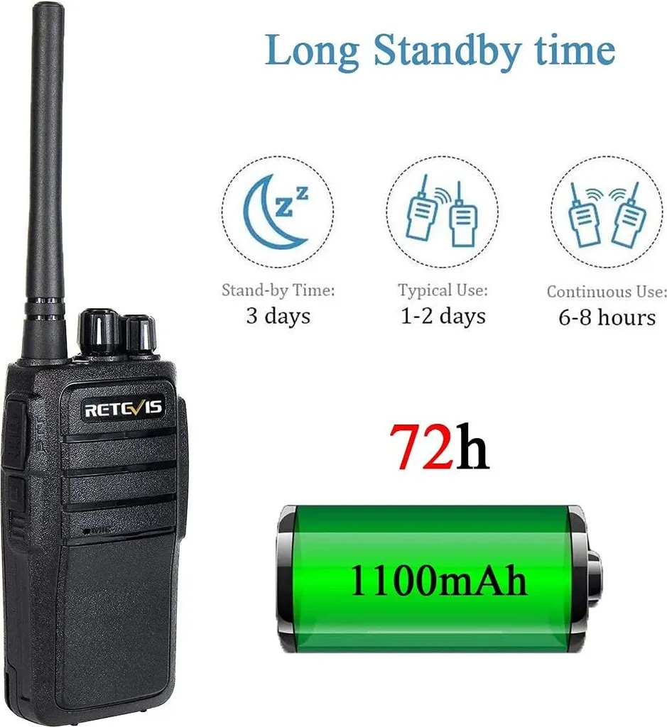 Retevis RT21 Walkie Talkie Professional, Funkgerät Mit Großer Reichweite, Tragbarer Handheld-Transceiver 1100 MAh Wiederaufladbares 2-Wege-Radio Für Nothilfe, Rettung (Schwarz, 2 Stück)