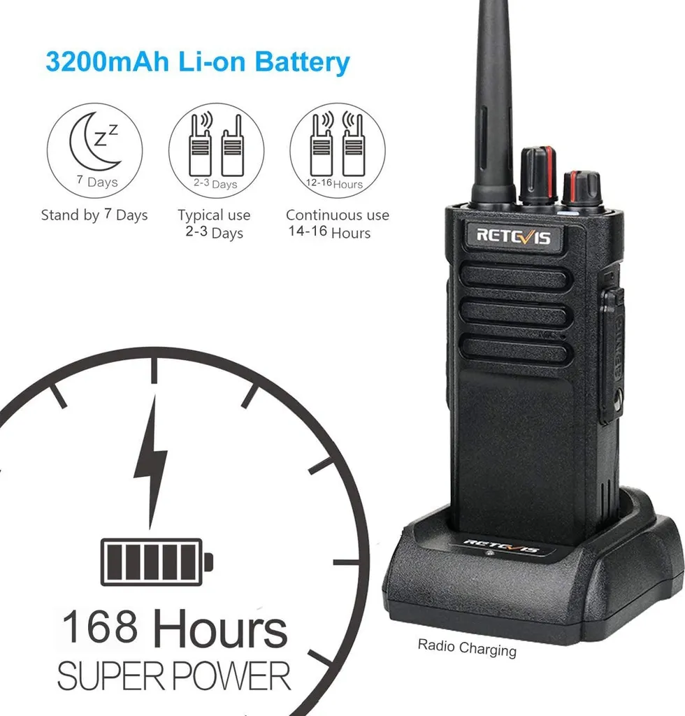 Retevis RT29 Funkgeräte Große Reichweite, Handfunkgerät Mit 3200 MAh, 8KM, IP67 Wasserdichtes Walkie Talkie, Professionelles Funkgerät Für Die Jagd, Überleben Vor Ort (Schwarz, 2 Stück)