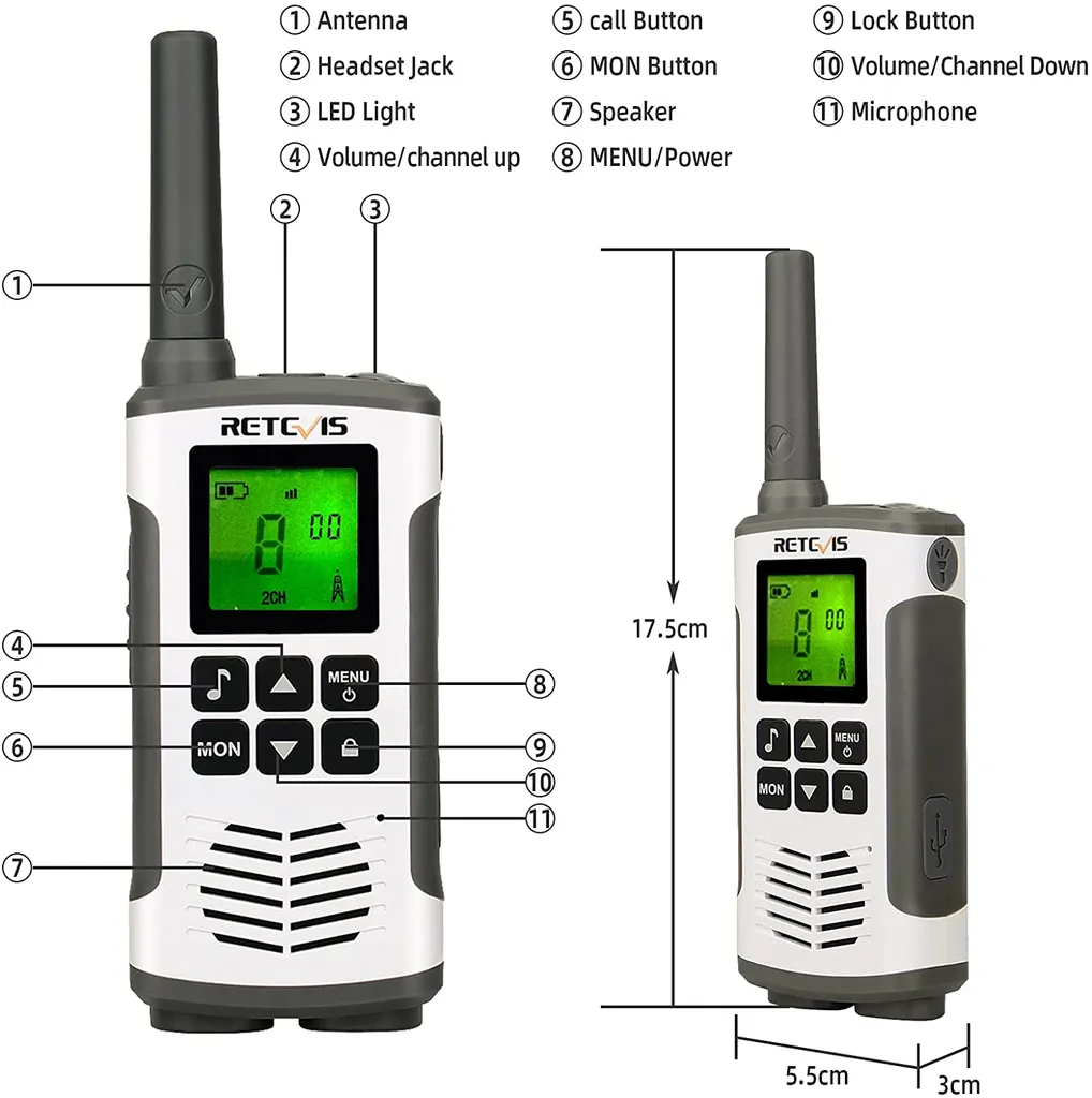 Retevis RT45 Walkie Talkie 4er Set, Funkgeräte Mit 16 Kanäle, Mit Wiederaufladbare AA-Batterie USB-Ladekabel, Vox Taschenlampe, Geschenke Für Jungen Mädchen (4er)