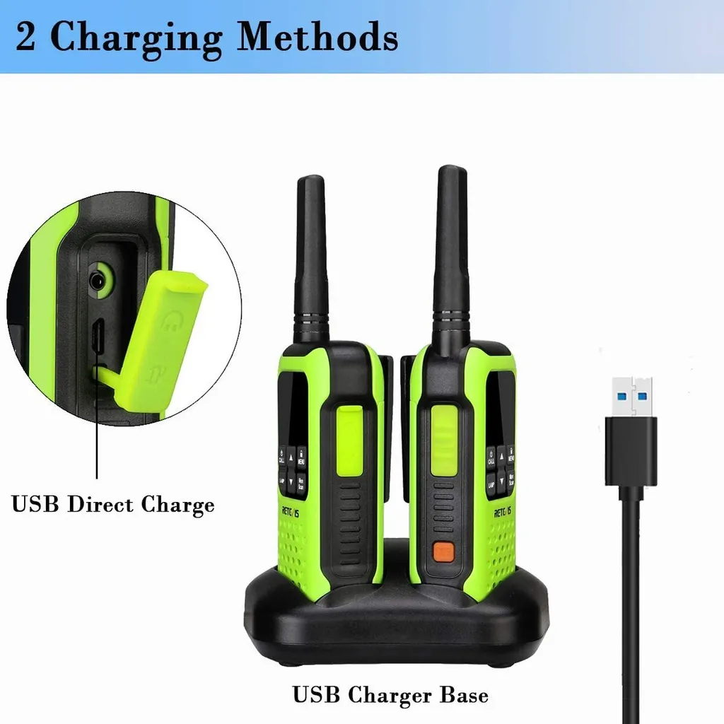 Retevis RT649P Walkie Talkie Wiederaufladbar, Wasserdichter IP67-Schwimmer, PMR 446, 16 Kanäle Lizenzfrei, LED-Taschenlampe, CTCSS/DCS VOX, Walkie Talkie-Headset Für Rettung(2 Paar, Grün)