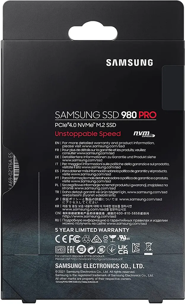 Samsung M.2 SSD 980 Pro, 1 TB, NVMe, 2280