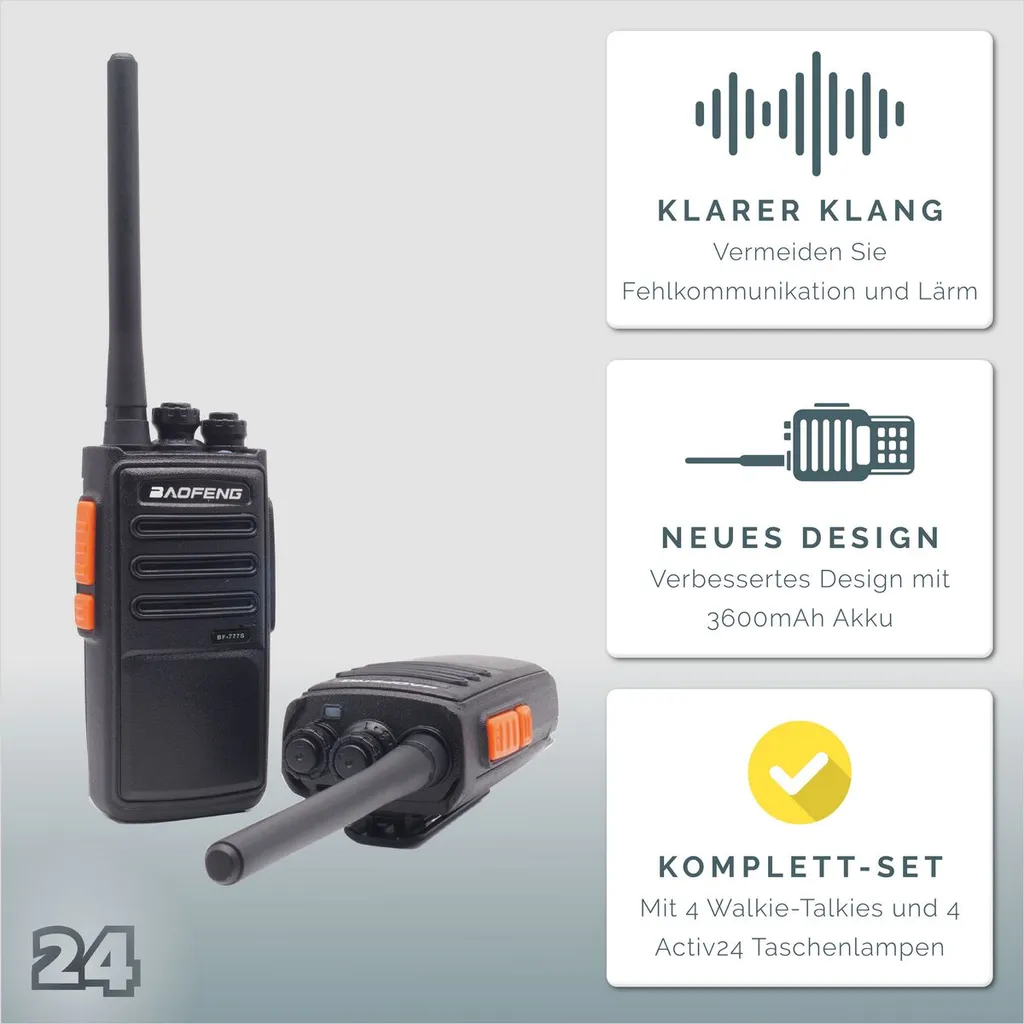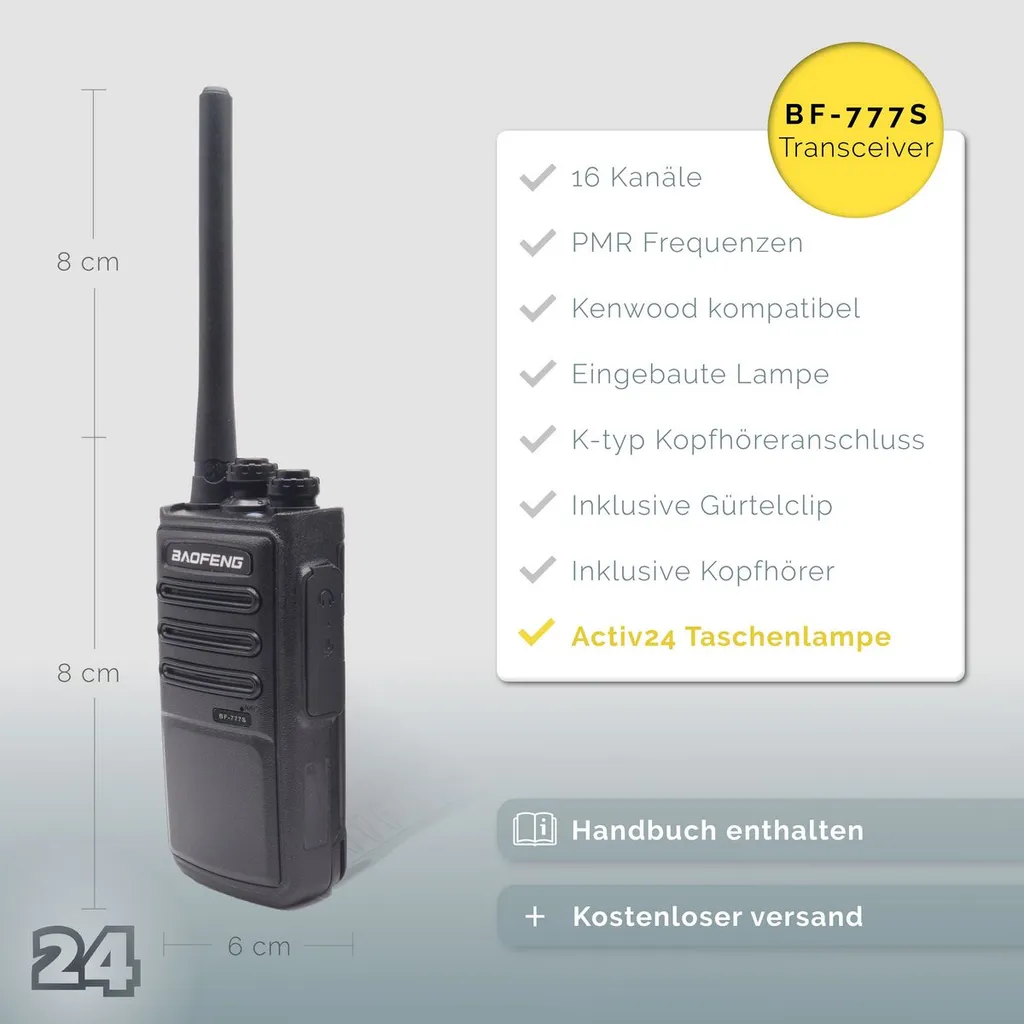 Satz Von 4x Kenwood Kompatibel Baofeng BF-777S PMR Funkgeräte Mit Headsets Und 4x Activ24™ Taschenleuchte – Walkie Talkie – BF777S PMR446 Funk
