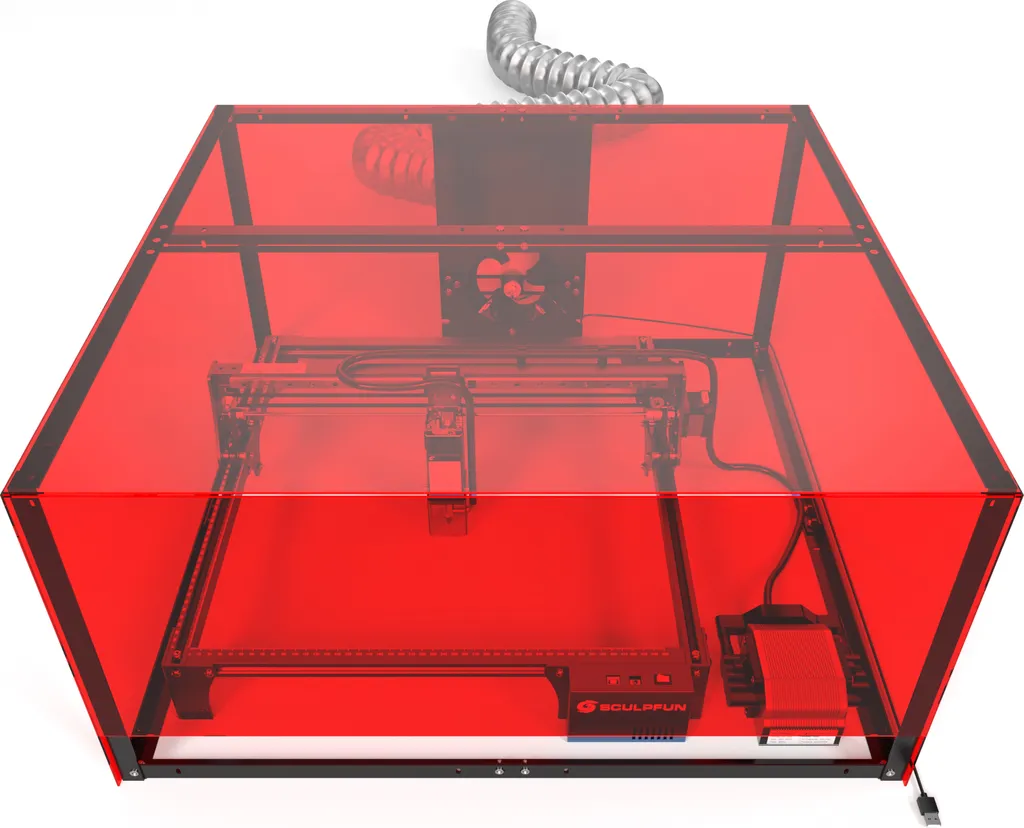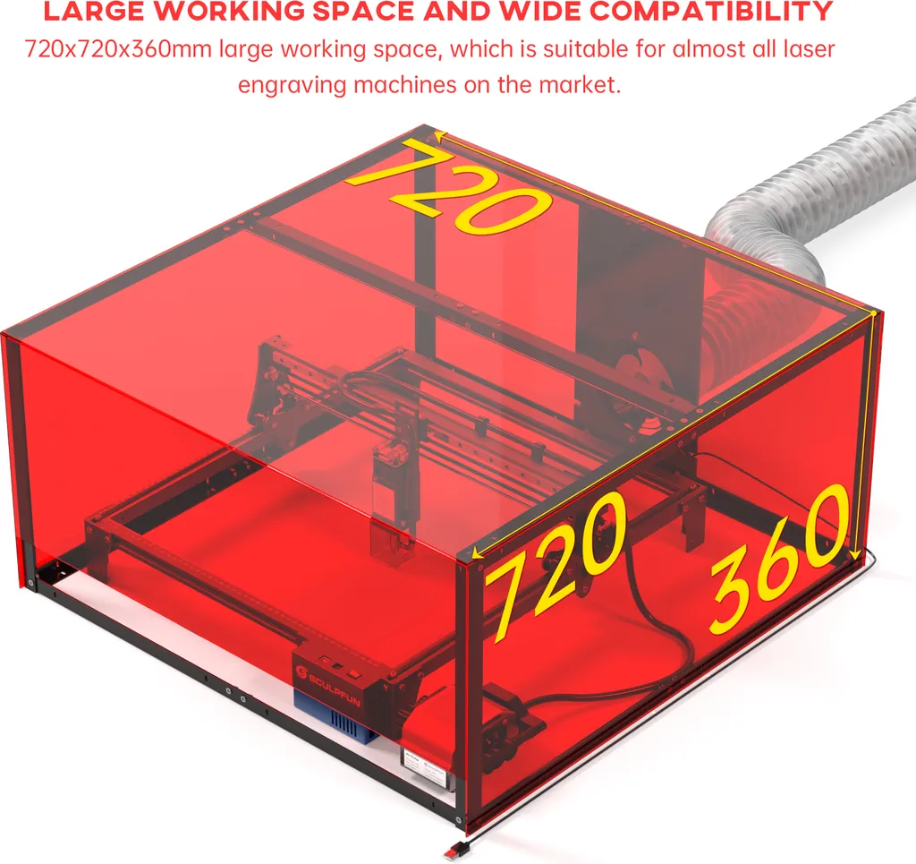 SCULPFUN Graviermaschinen Staubdichte Schutzbox 720 X 720 X 360 Mm Rauchabzug Mit Leistungsstarkem Saugventilator Ganzmetallstruktur PVC-Gehaeuse Einfach Zu Installieren