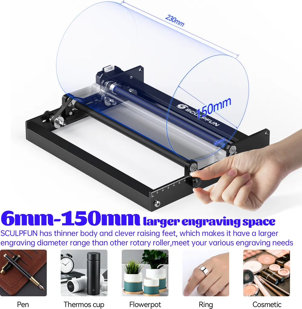 SCULPFUN Rotationswalze Für Zylindrische Objekte Mit 360° Drehbarer Gravierachse 6-150 Mm