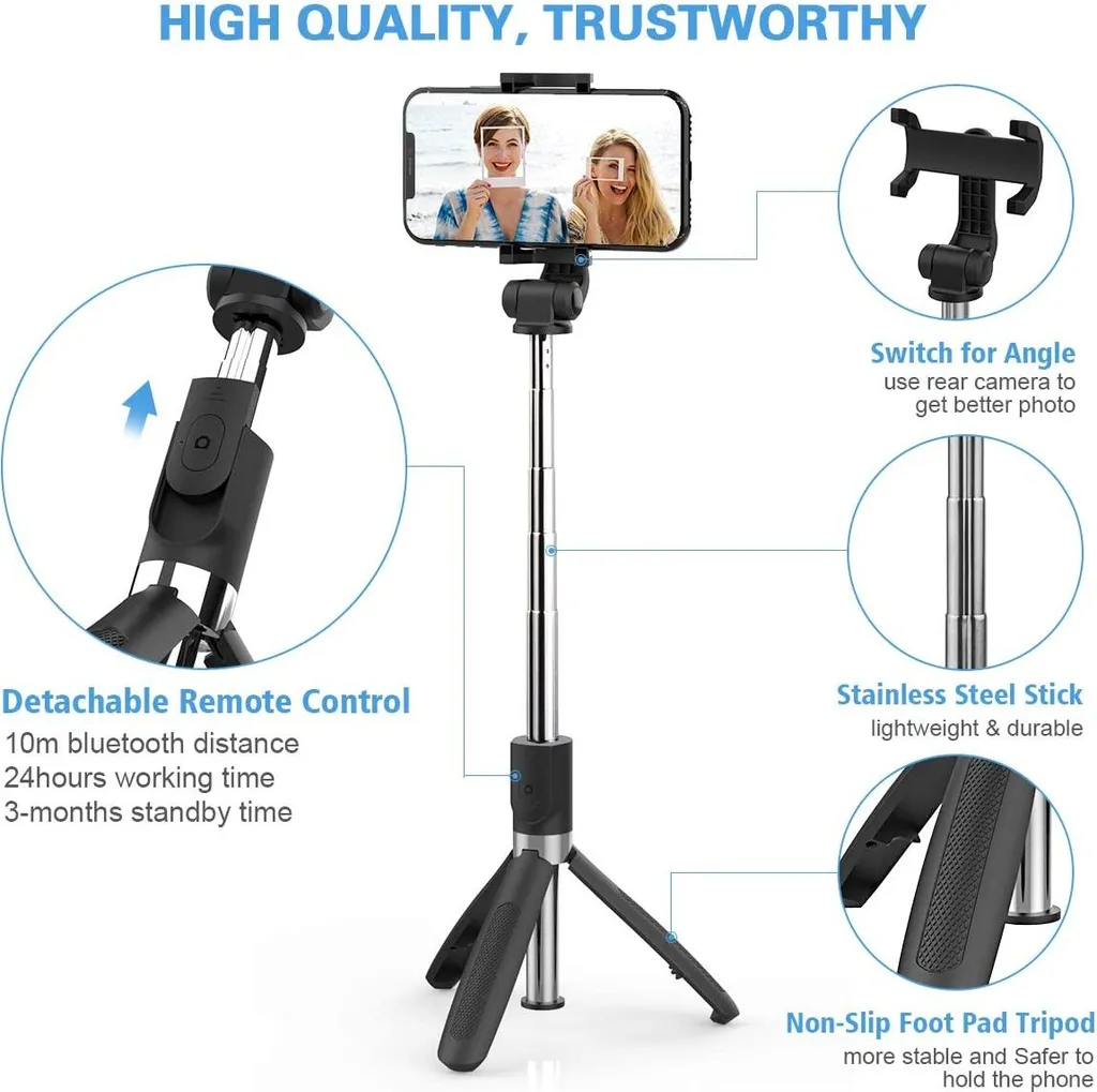 Selfie Stick 3 In 1 Bluetooth Selfie Stick Stativ 360° Rotation Monopod Teleskop Selfiestick