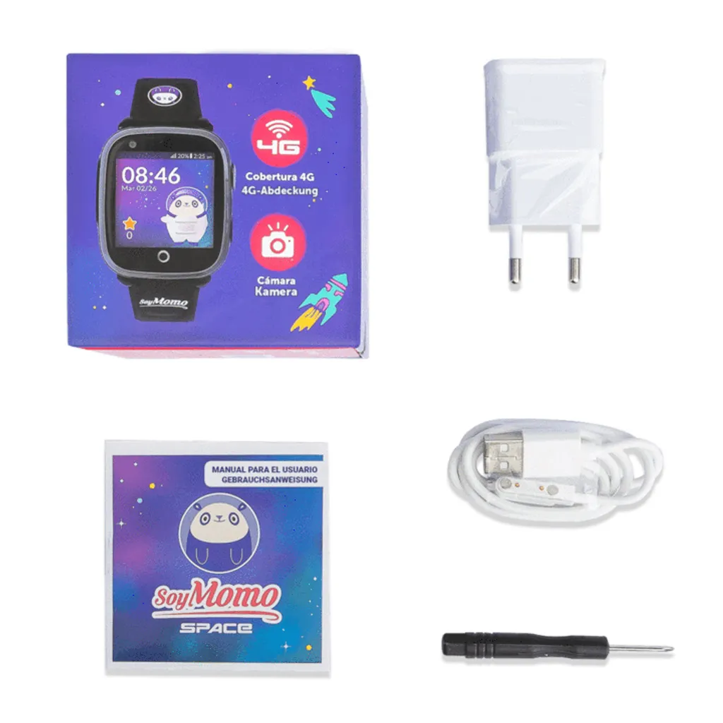 SoyMomo Space 4G – Telefon Uhr Für Kinder (SIM-frei) – 4G, Videoanrufe, Anrufe, (Sprach)Nachrichten, Schulmodus, SOS-Funktion, GPS, Kamera, Taschenlampe Und Schrittzähler (SCHWARZ)