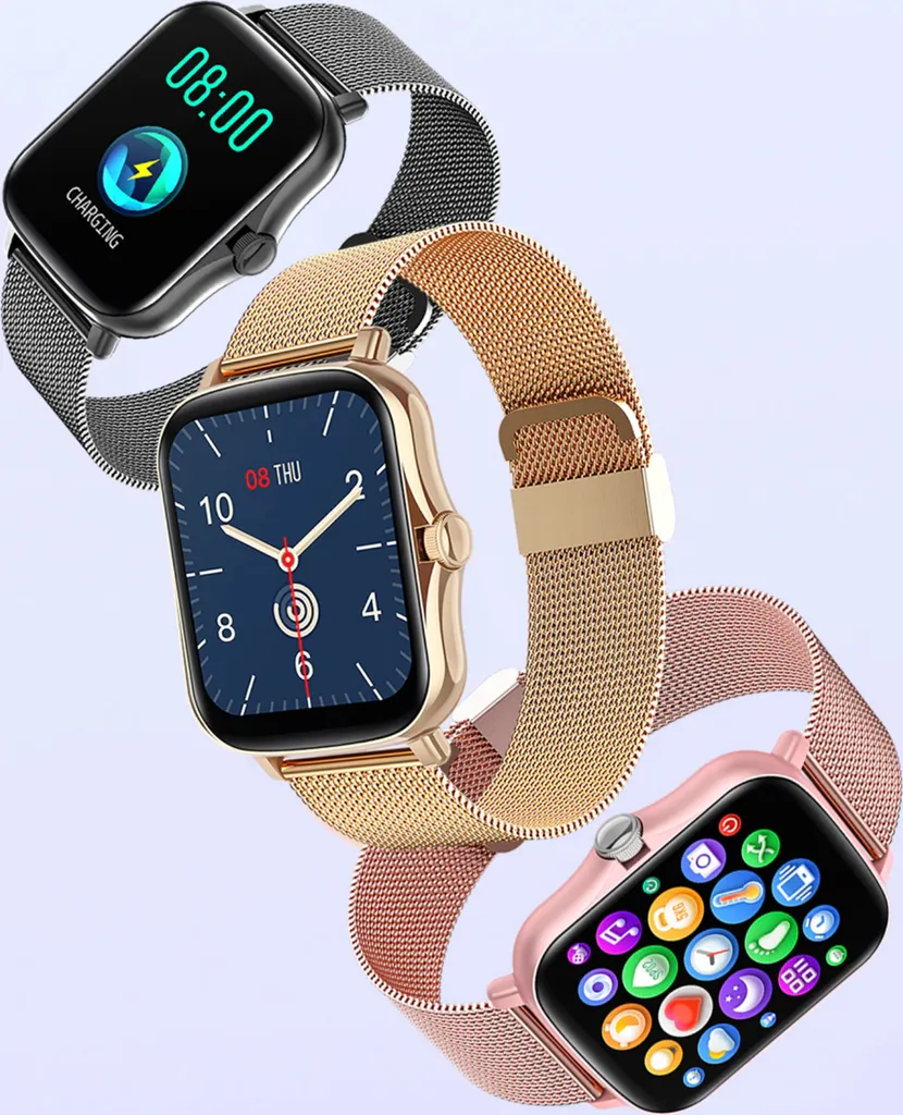 TPFNet Smartwatch Mit Milanaise Armband + Silikon Armband – Individuelles Display – Smart Watch Armbanduhr – Modell SW3 – Rosa