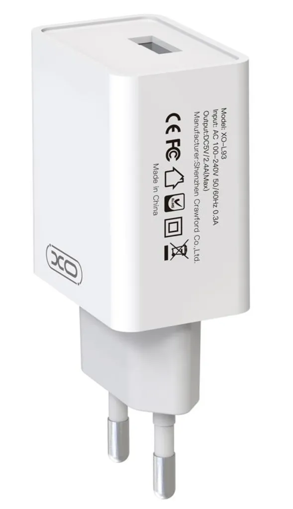 XO Netzteil-Adapter L93 2,4A + XO Datenkabel USB-A Auf USB-C 1m Weiß