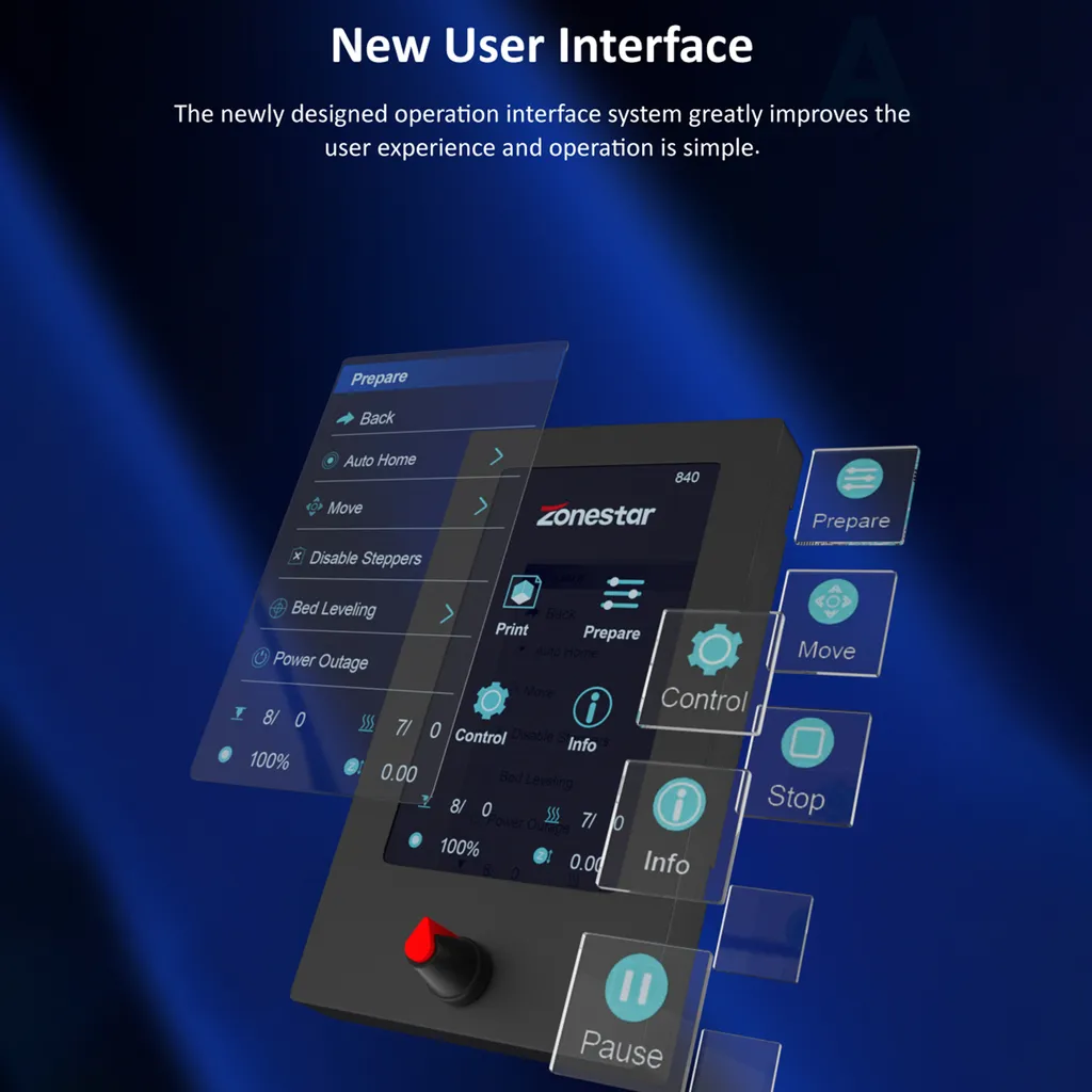 Zonestar Z9V5 PRO MK4 Verbesserter 3D-Drucker 300 X 300 X 400 Mm Druckgröße Mit Einstellbarem Vier-Extruder-Design Mehrfarbendruck Funktioniert Mit PLA/PLA+/PVA/PETG Usw.